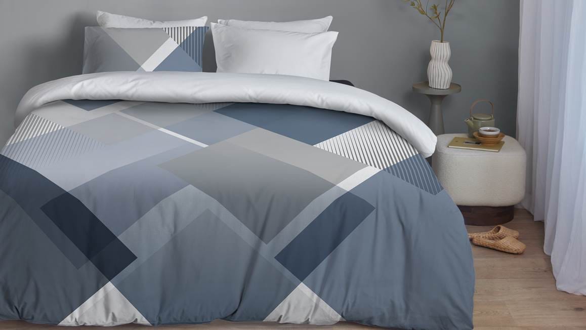 Met het Serve dekbedovertrek van het merk Blushwood geef je jouw slaapkamer een strakke uitstraling. Het ontwerp bestaat uit een geometrisch patroon in blauwe tinten. Op de witte ondergrond oogt dit geheel fris. Het overtrek matcht dan ook perfect in een Scandinavisch of modern interieur.