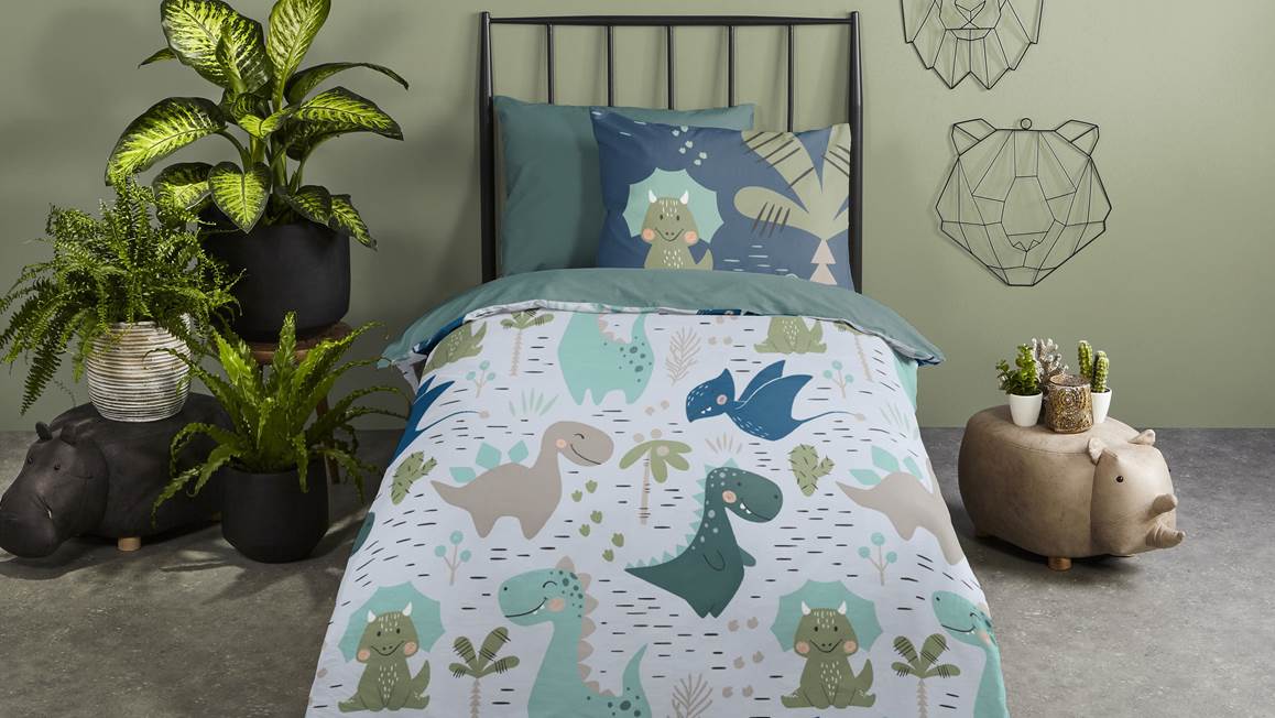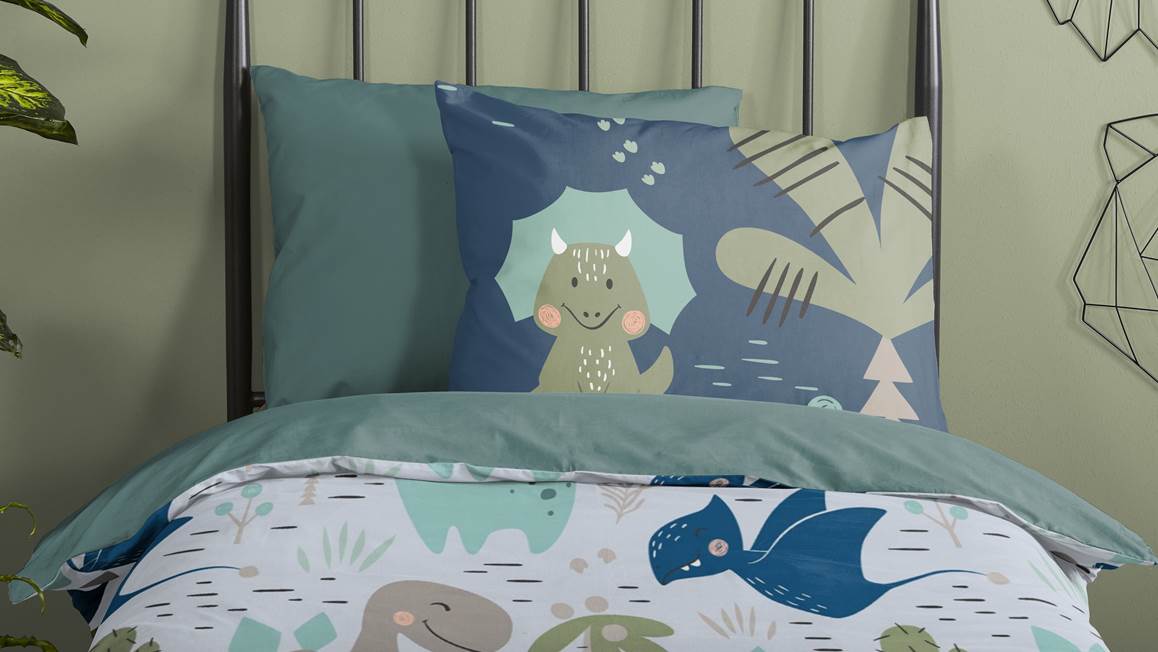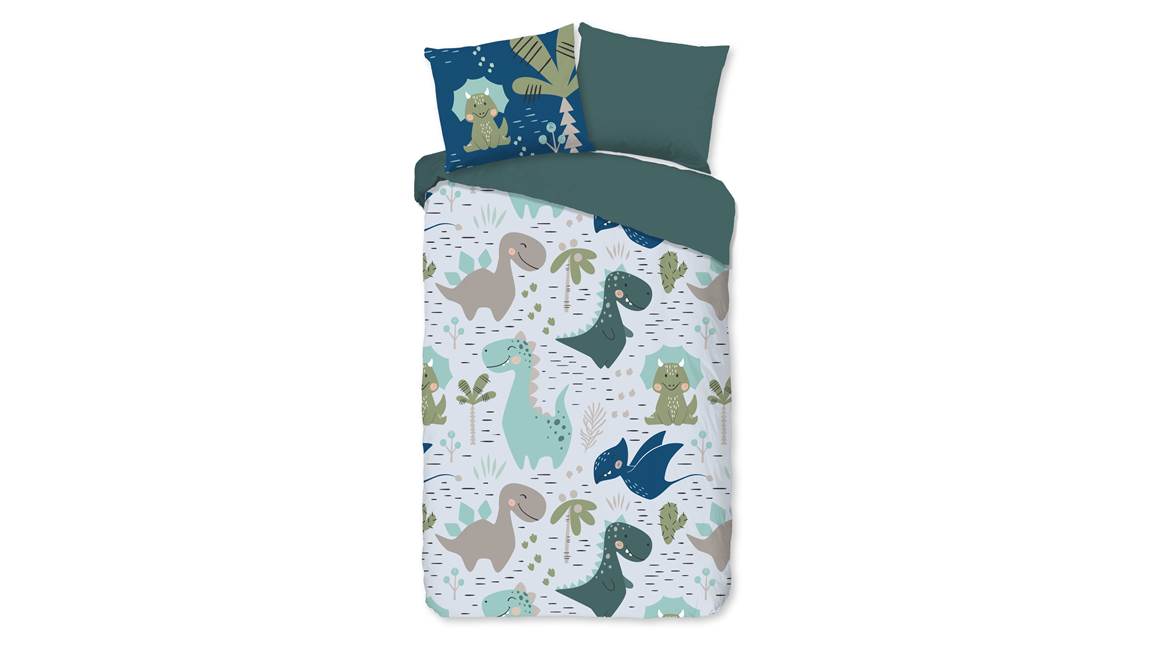 Geef de slaapkamer van jouw kindje een stoere uitstraling met het Pure Mees All-In One Lazy dekbed. Het dekbed is voorzien van een coole dinosaurussen print en de achterkant is effen groen. Zo valt jouw kleintje heerlijk in slaap en doe jij niet meer moeilijk met het opmaken van het bed.