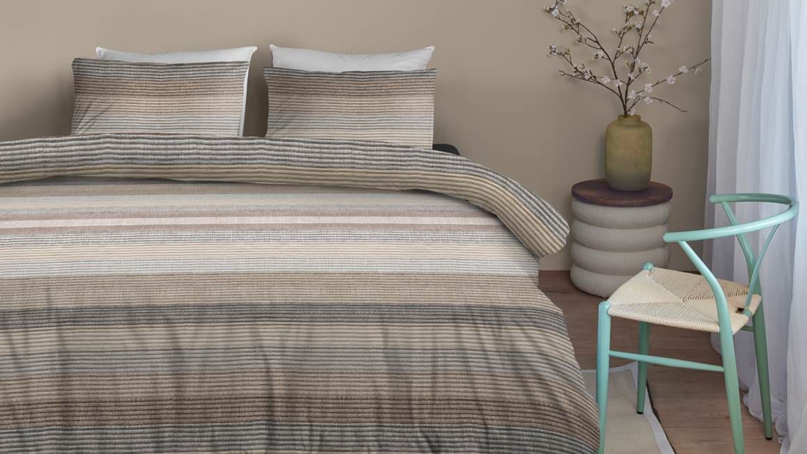 Ben jij een liefhebber van strepen? Dan is het Blushwood Alma dekbedovertrek echt iets voor jou! Het dessin bestaat uit zachte aardetinten waarbij de strepen verschillende diktes hebben en zijn voorzien van diverse reliëfjes.