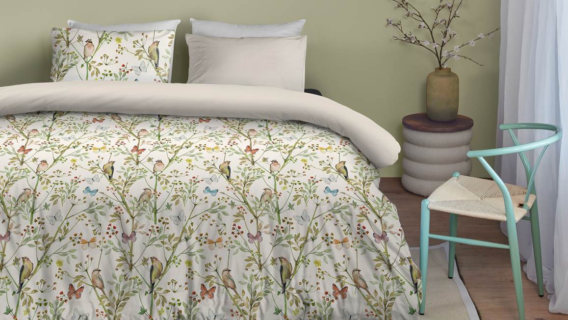 Fleur jouw interieur op met het Blushwood Amour dekbedovertrek. Op het witte dessin staat een print van zomerse bloemen en bladeren. Tussen de bloemen zie je verschillende kleine vogeltjes en vlinders. De achterkant is effen, zodat je leuk kunt afwisselen tussen de prints.