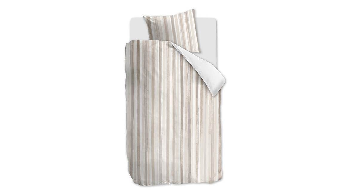 Val iedere avond heerlijk in slaap met het Blushwood Cef dekbedovertrek. De verticale strepen in zachte aardetinten lijken op het overtrek geschilderd, waardoor het geheel er artistiek uitziet. Sla het overtrek een stukje om en tover de effen witte achterzijde tevoorschijn. De bijbehorende kussenslopen bevatten ook beide prints.