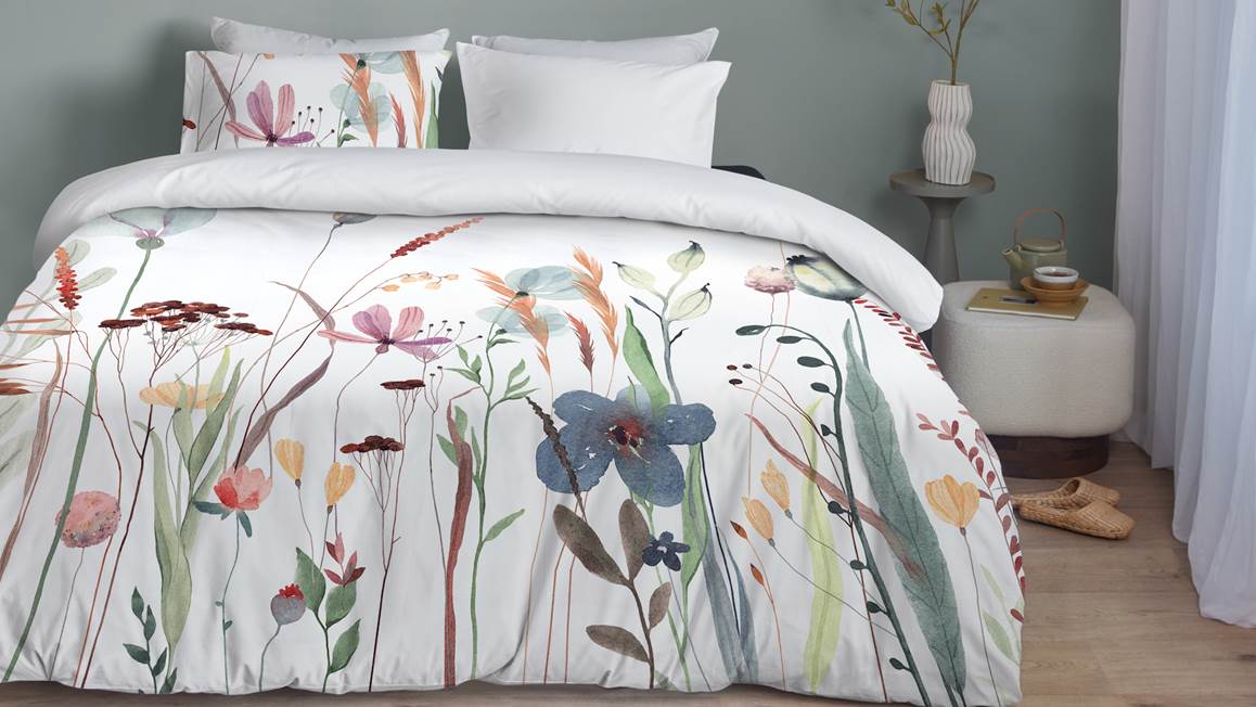 Haal de lente in huis met het Francien dekbedovertrek van het merk Blushwood. Op het witte overtrek staat een print van veldbloemen in vrolijke kleuren. De witte ondergrond zorgt voor een frisse uitstraling in jouw slaapkamer.