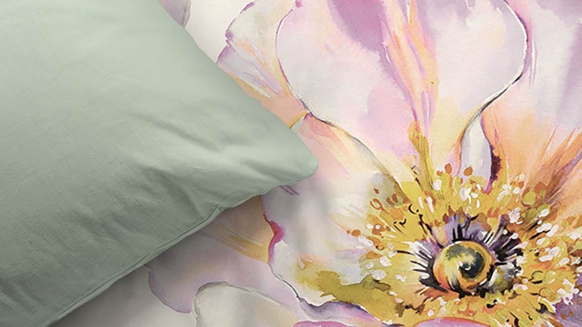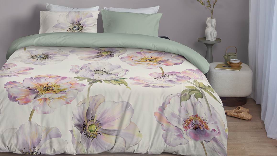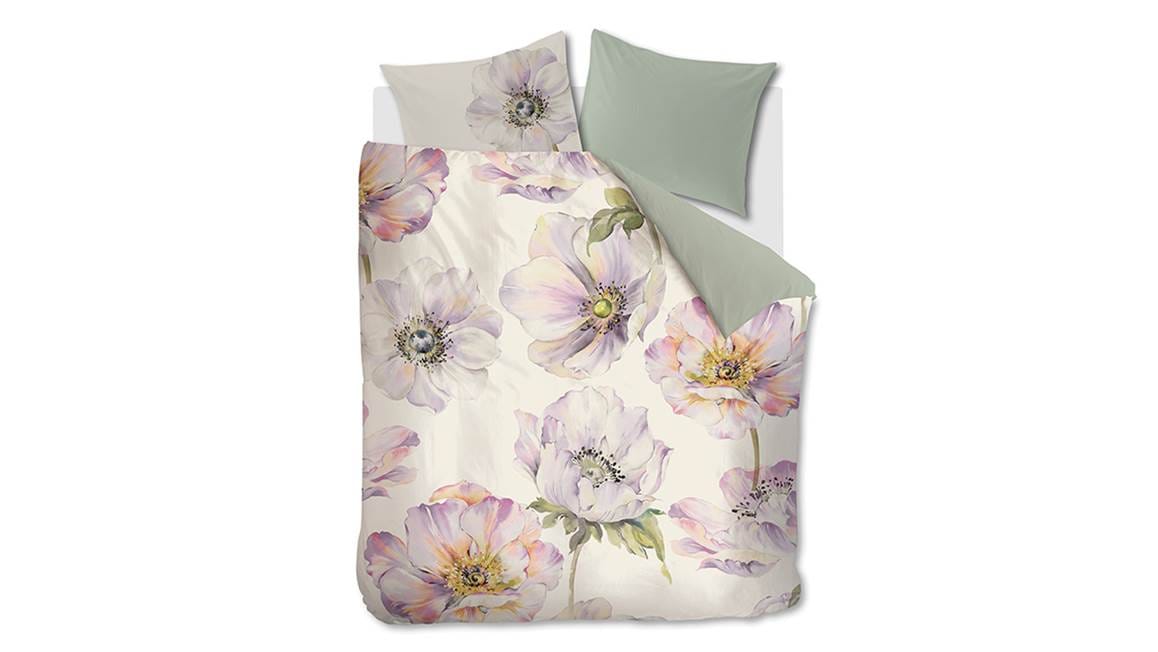 Wil jij graag een romantische uitstraling in de slaapkamer? Dan is het Blushwood Janice dekbedovertrek een echte must-have.. Prachtige bloemen in paarse en oranje tinten staan afgebeeld op de witte ondergrond. Maak de look compleet door het overtrek een stukje om te slaan en een mintgroene omslag te creëren.