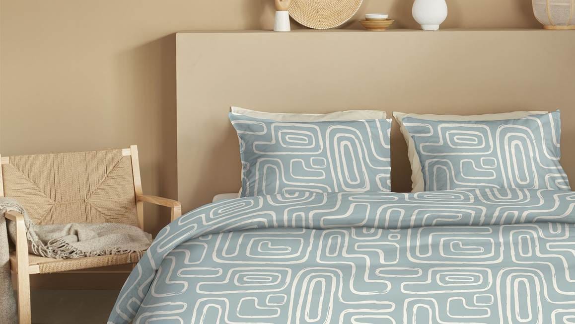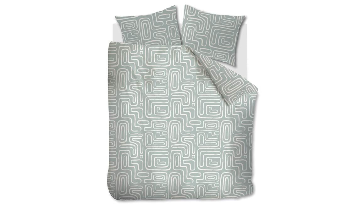 Het Blushwood Meghan dekbedovertrek heeft een zachte blauwgroene kleur met een witte trendy print, geheel in lijn met de welbekende Japandi woonstijl. Het dekbedovertrek voelt zacht en soepel aan en is daarnaast een echte eyecatcher in jouw slaapkamerinterieur!