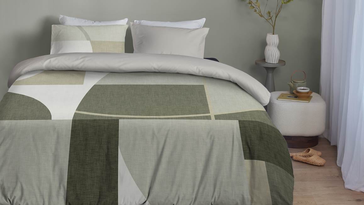 Het groene Blushwood Oscar dekbedovertrek geeft jouw slaapkamer echt een boost. Ronde en rechte vormen komen samen in dit trendy ontwerp. De achterzijde is effen van kleur. De bijbehorende kussenslopen bevatten beide prints, zodat je leuk kunt mixen en matchen.