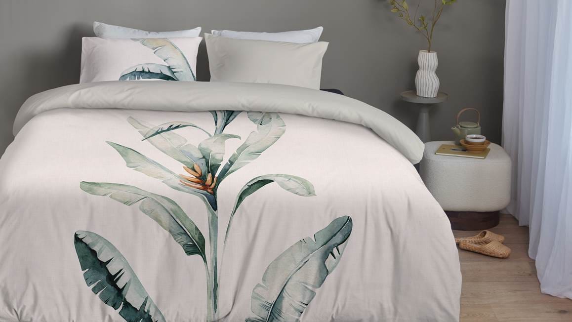 Een stijlvol overtrek, dat is het Sila dekbedovertrek van Blushwood! Op het zandkleurige dessin staat een grote print van een tak met blader in een warme groene kleur. De bruine bladeren zorgen voor een sfeervolle touch. Val iedere avond heerlijk in slaap.