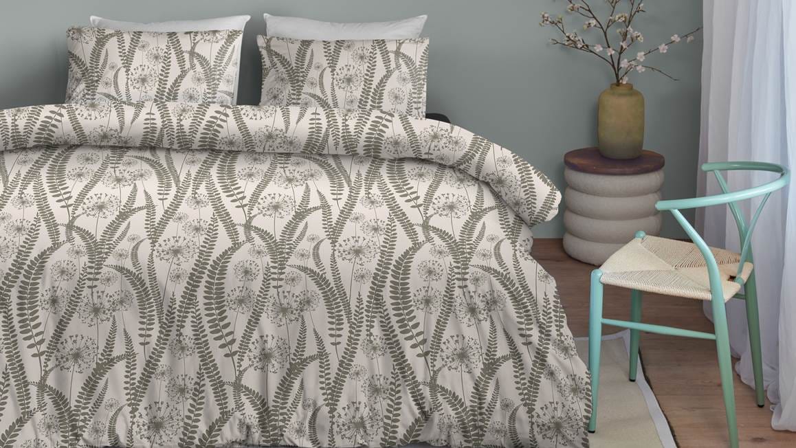 Droom iedere avond heerlijk weg onder het Blushwood Soren dekbedovertrek. Sierlijke takken met bladeren zijn speels op het overtrek geplaatst. Hiertussen vind je verschillende paardenbloemen. Haal eenvoudig de natuur in huis!