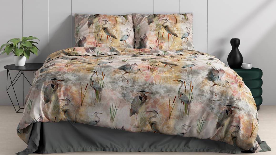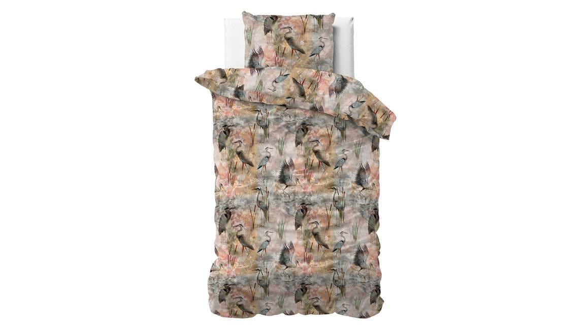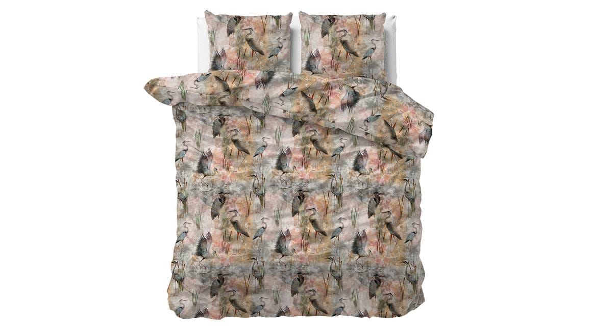 Kom iedere avond helemaal tot rust met het Dahila dekbedovertrek van het merk Dreamhouse. Op het dessin staan verschillende reigers in het water. De roze en groene accenten geven het ontwerp een kleurrijke touch.