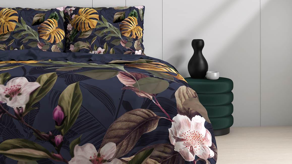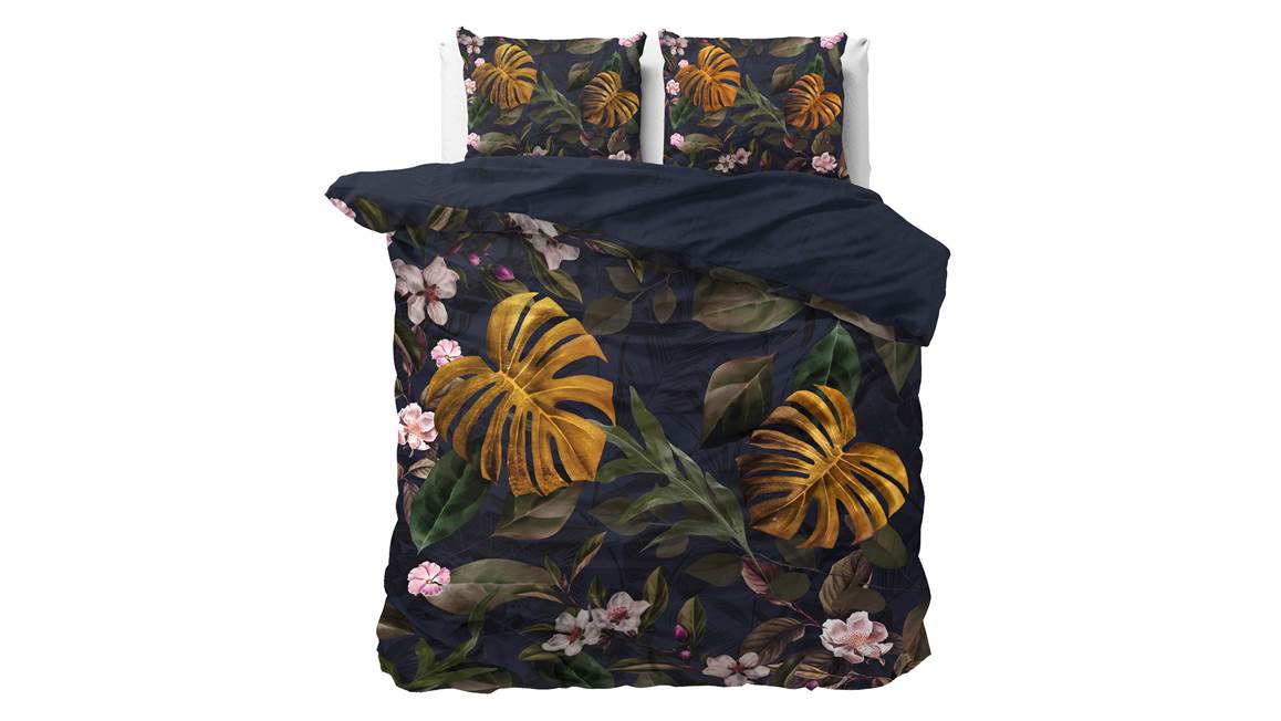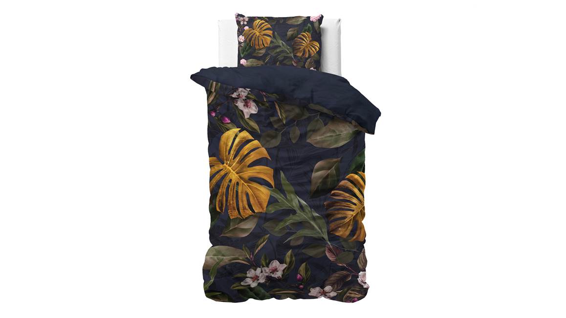 Ben jij op zoek naar een echte eyecatcher voor op bed? Dan is het Dreamhouse Durk dekbedovertrek een echte must-have. De gouden bladeren trekken direct je aandacht tussen de groene bladeren en op de blauwe ondergrond. De achterzijde is effen van kleur.