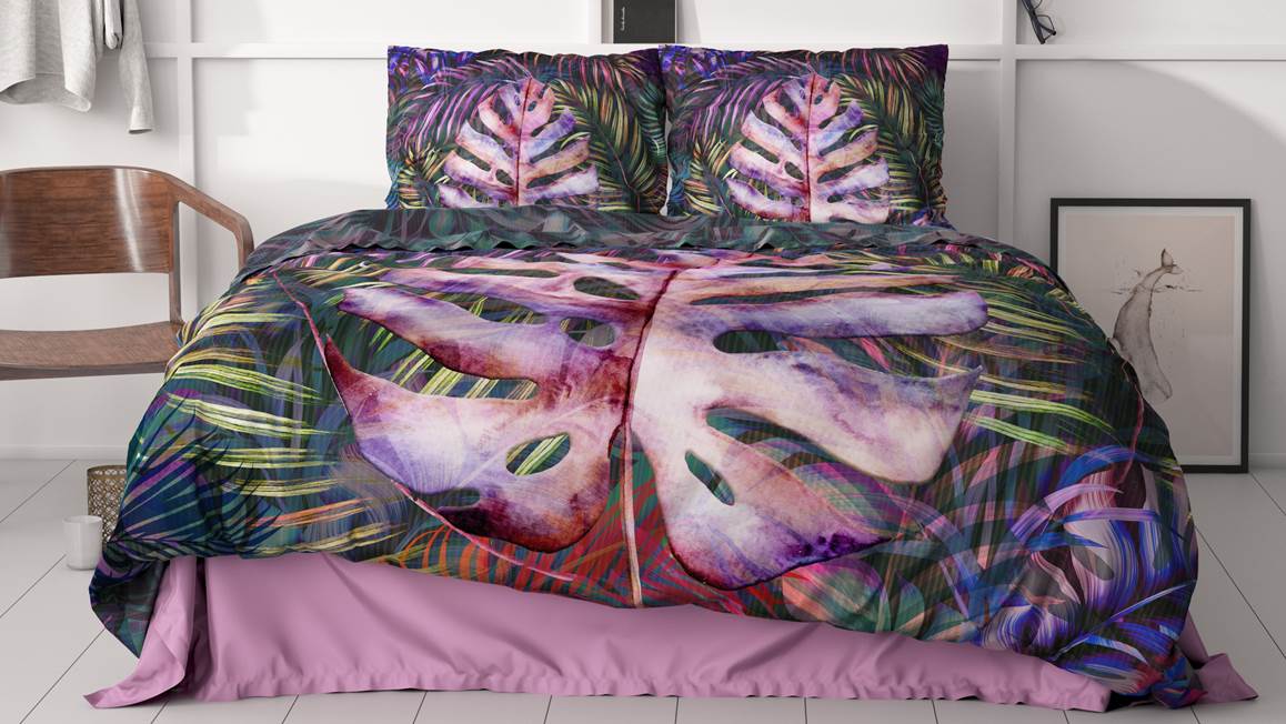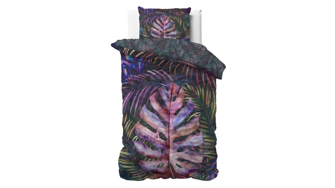 Voeg extra kleur toe aan de slaapkamer met het Dreamhouse Romina dekbedovertrek. Het ontwerp bestaat uit verschillende bladeren, waarbij het grote paarse blad in het midden de echte eyecatcher is. Hierdoor is het overtrek een echte toevoeging voor jouw slaapkamer.