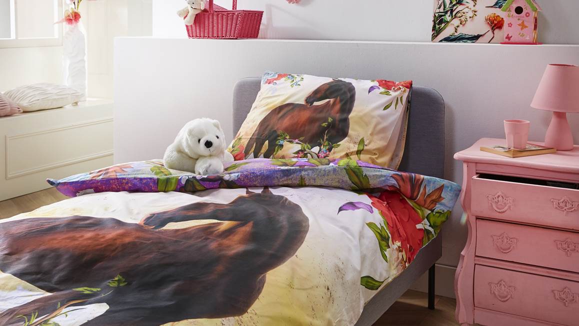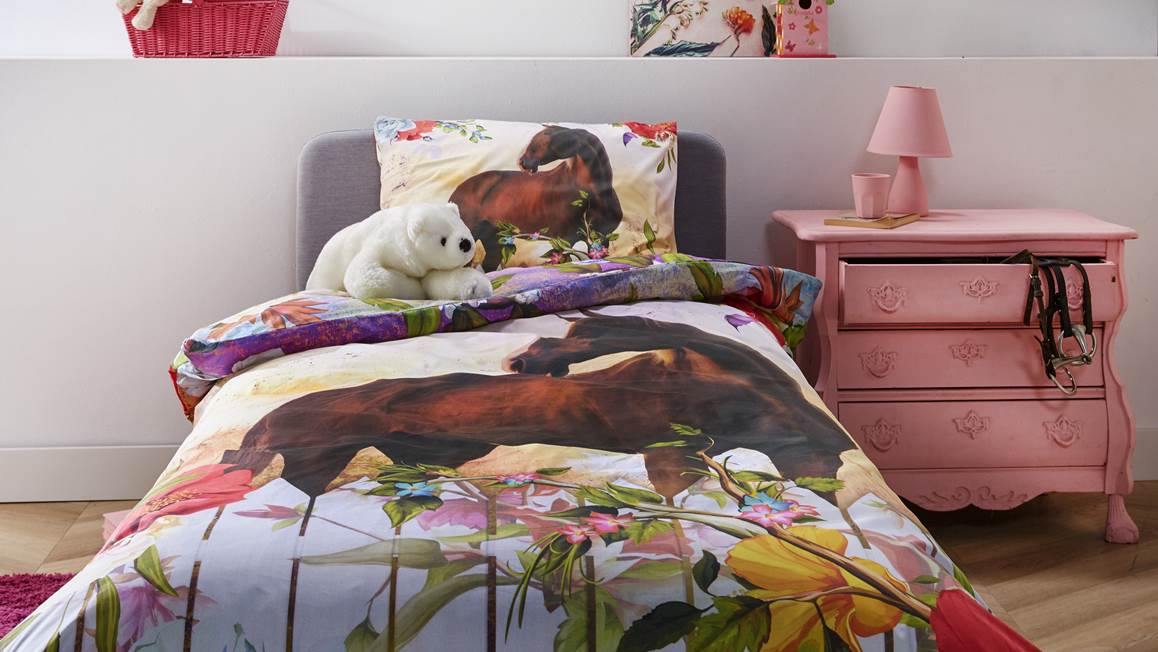 Het iSeng Ponyta dekbedovertrek is een must-have voor de paardenliefhebber. Het prachtige bruine paard staat tussen de fel gekleurde bloemen. Droom iedere nacht over de leuke avonturen die jij en dit bruine paard samen gaan beleven!