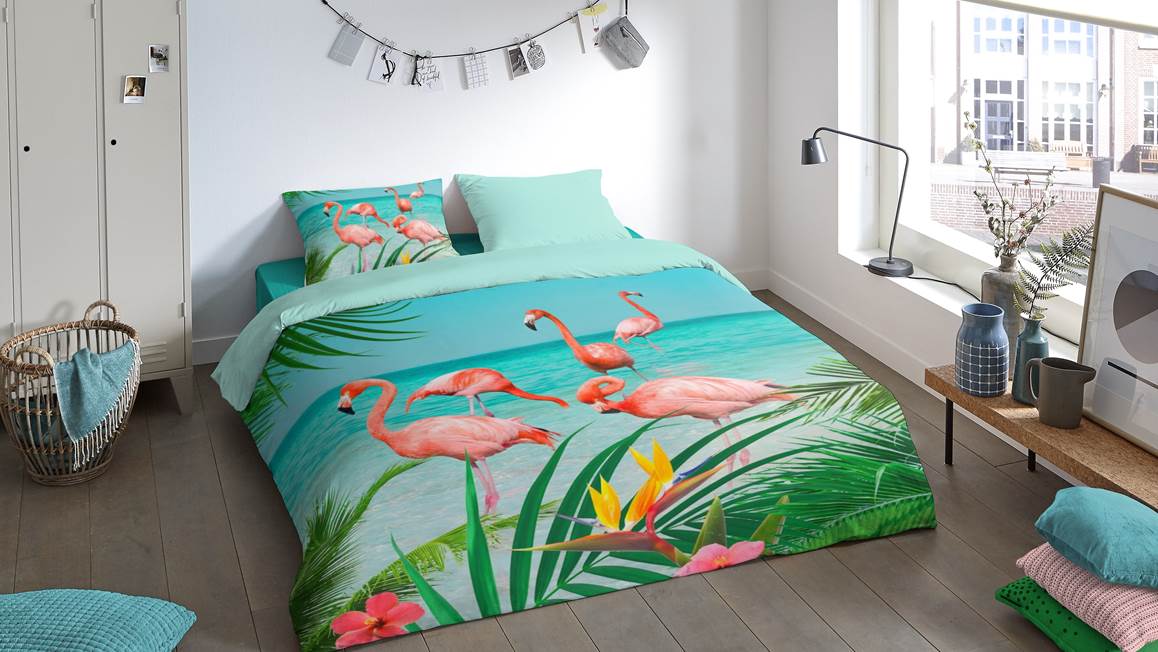 Op een tropisch eiland kom je helemaal tot rust. Laat jezelf daarom omringen met azuurblauwe luchten, witte stranden en roze flamingo’s. Onder dit vrolijke Pure Flamingo dekbedovertrek droom je elke nacht heerlijk weg.