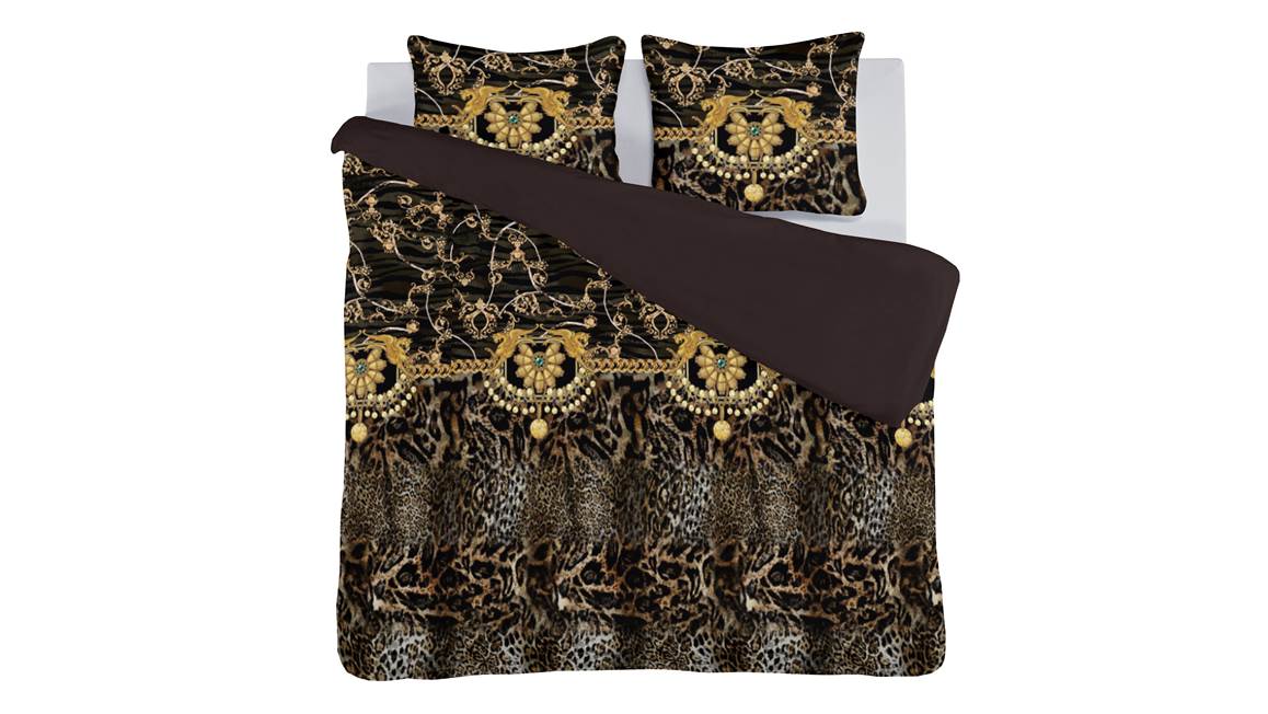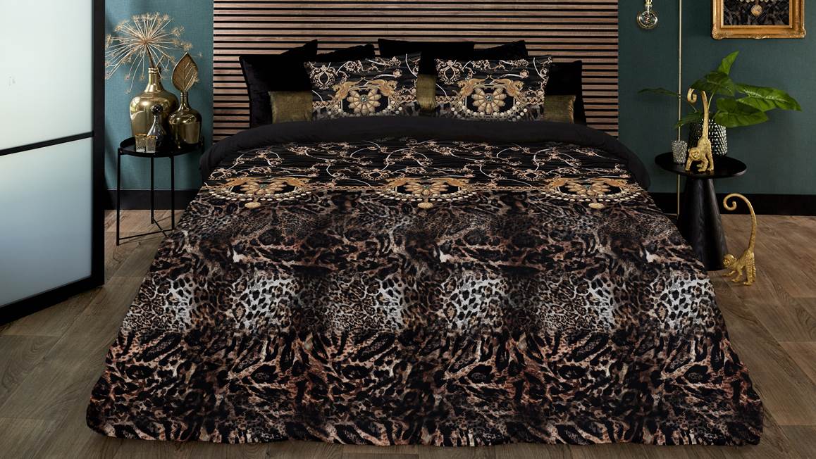 Het Senzai Nikita dekbedovertrek is erg stijlvol. Het dessin bevat verschillende dierenprints met daarbij gouden accenten. Dit geeft het overtrek een luxe uitstraling. De achterzijde is effen van kleur, zodat je een leuke omslag kunt creëren!