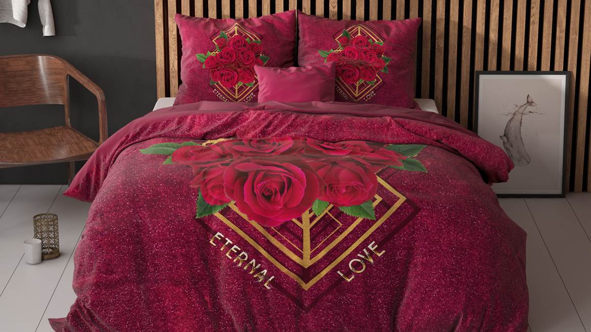 Droom iedere avond heerlijk weg onder het Sleeptime Eternal Love dekbedovertrek. Het rode dessin bevat een print van een mooie bos rode rozen en enkele gouden accenten. Hiermee creëer je eenvoudig een liefdevolle sfeer in jouw slaapkamer.