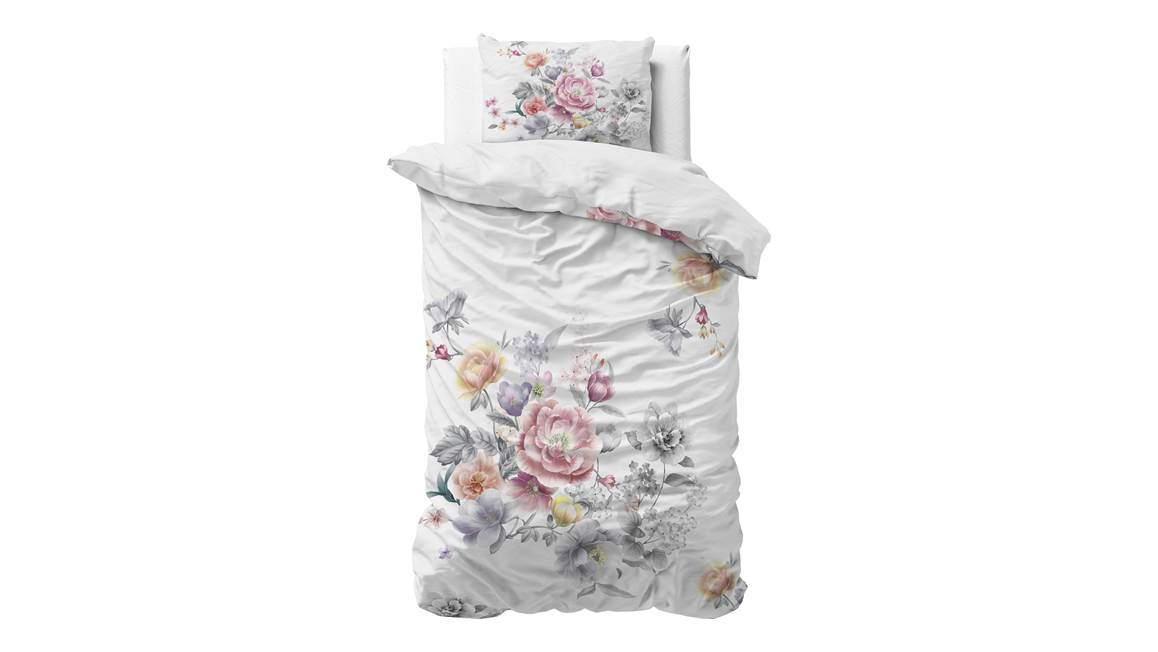Houd jij van romantiek en zachte kleuren? Dan past het Sleeptime Isabeau dekbedovertrek perfect bij jouw slaapkamer! Deze fleurige bloemenprint springt je in het oog en komt prachtig naar voren op de witte ondergrond. De achterzijde is wit.