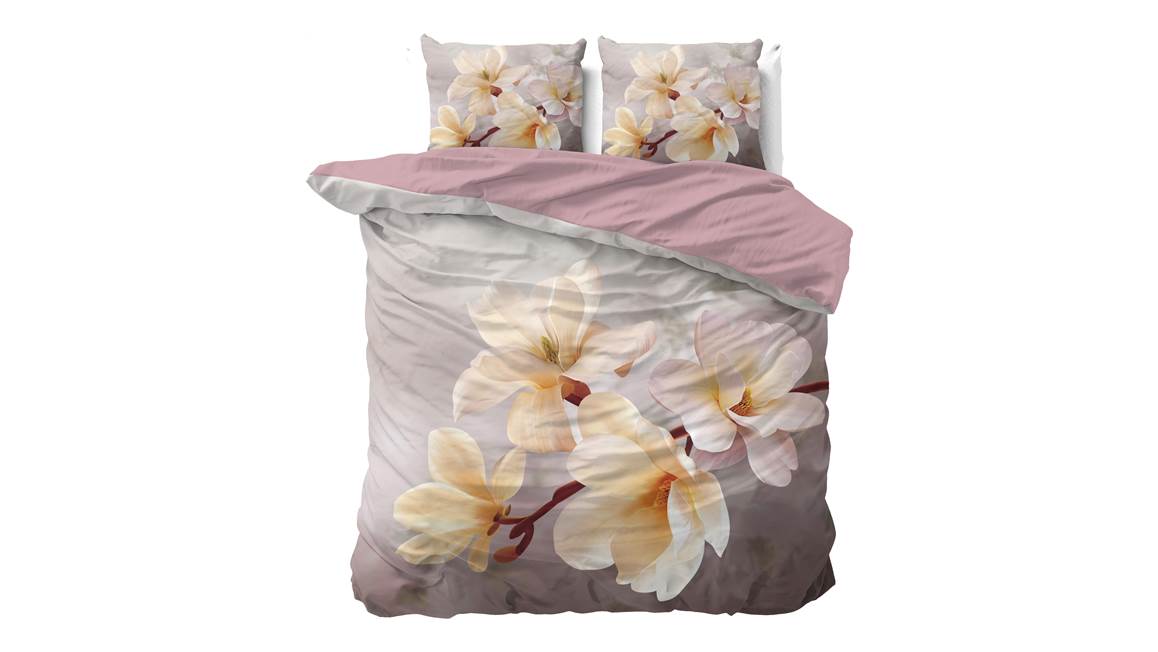 Het fleurige Sleeptime Isaline dekbedovertrek is een plaatje om te zien. Deze mooie bloemenprint laat je elke avond heerlijk tot rust komen. Op de zachte ondergrond springen de prachtige bloemen je in het oog. De achterzijde is effen roze.