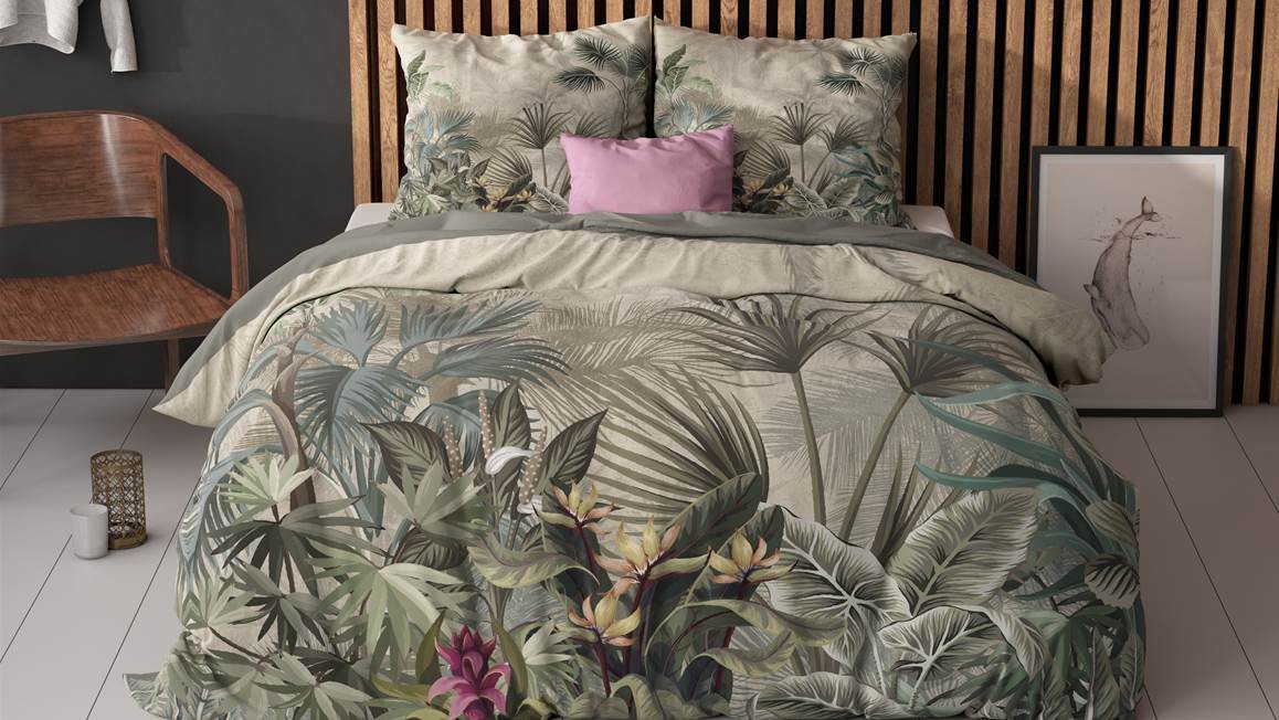 Haal de jungle je slaapkamer binnen met dit leuke Macy dekbedovertrek. Op het groene dessin zie je een botanische print vol bladeren en palmbomen. Voor de finishing touch sla je het overtrek een stukje open. De achterzijde is effen groen!