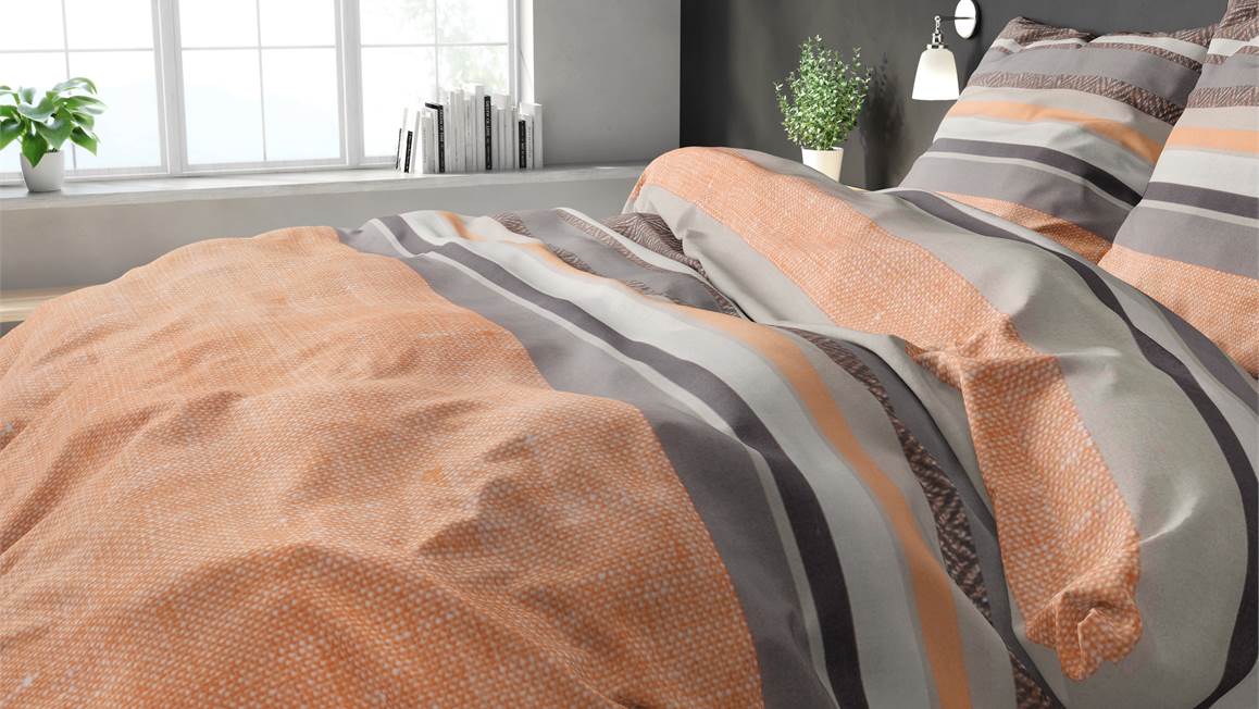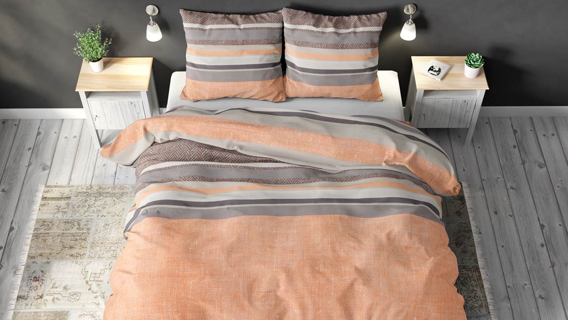 Het Sleeptime Sonta dekbedovertrek lijkt op een prachtige zonsondergang. Het zachte oranje op het overtrek vormt een perfecte combinatie met de grijze lijnen in diverse tinten. De achterzijde is voorzien van dezelfde print.
