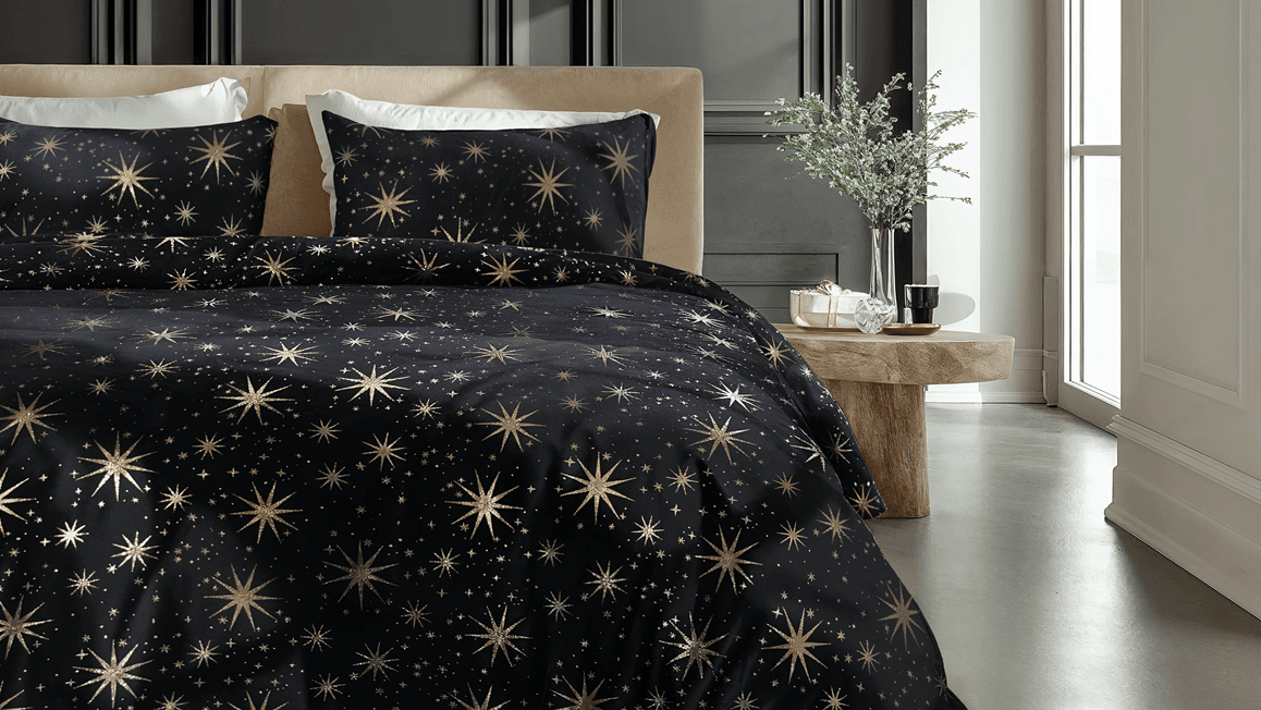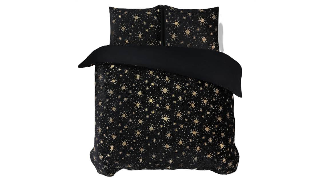 Het Sleeptime Stars flanel dekbedovertrek is een opvallende verschijning! Het zwarte dekbedovertrek heeft een heerlijk zacht materiaal, flanel is bij uitstek geschikt voor de koudere wintermaanden. Daarnaast is de voorzijde voorzien van een chique goudfolie print van sterren. Het zorgt voor een magisch sfeertje, een mooie toevoeging voor op bed!