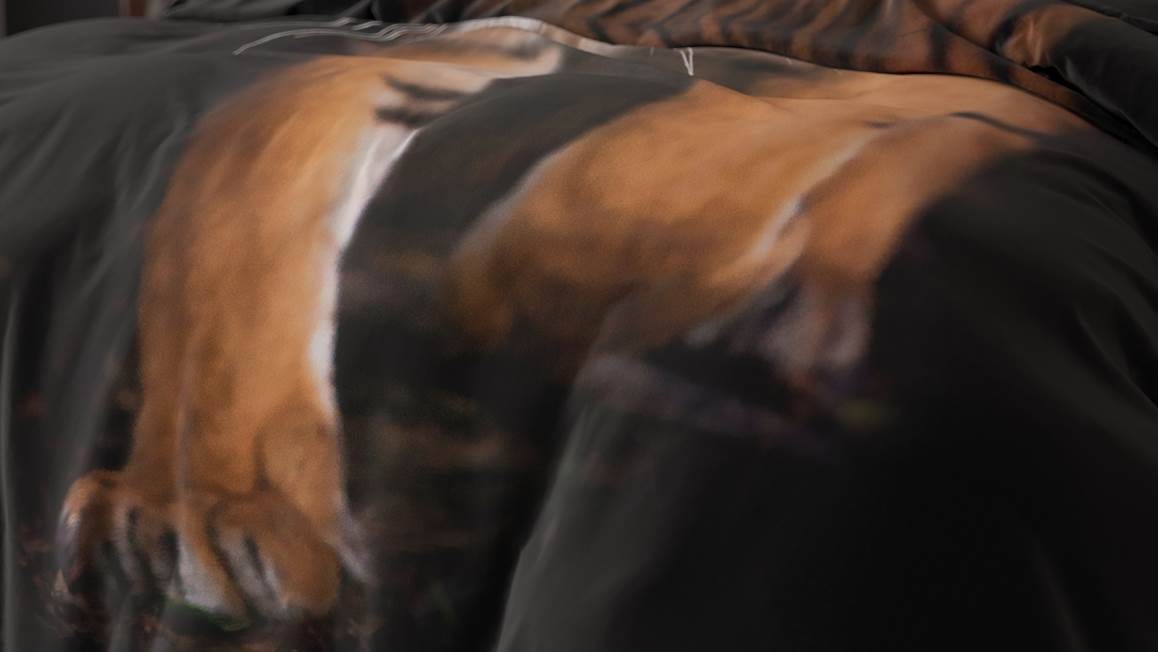 Een prachtige tijger sluipt naar je toe op het Sleeptime Tiger Icon dekbedovertrek. Het wilde dier komt fantastisch uit op de zwarte ondergrond wat de print een mysterieuze touch geeft. De bijbehorende kussenslopen zijn voorzien van dezelfde print voor een stijlvol geheel.