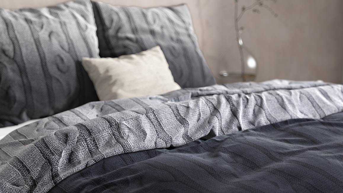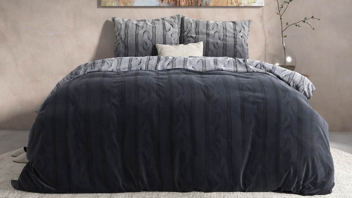 Het Dreamhouse Dante flanel dekbedovertrek heeft wat weg van een warme, gebreide trui. Heerlijk om onder weg te kruipen. Het dekbedovertrek met breipatroon heeft een subtiel kleurverloop in grijs en blauw. De print is aan beide zijden verwerkt en komt ook terug in de bijpassende kussenslopen. Gemaakt van flanel, een heerlijk materiaal geschikt voor de koudere nachten.
