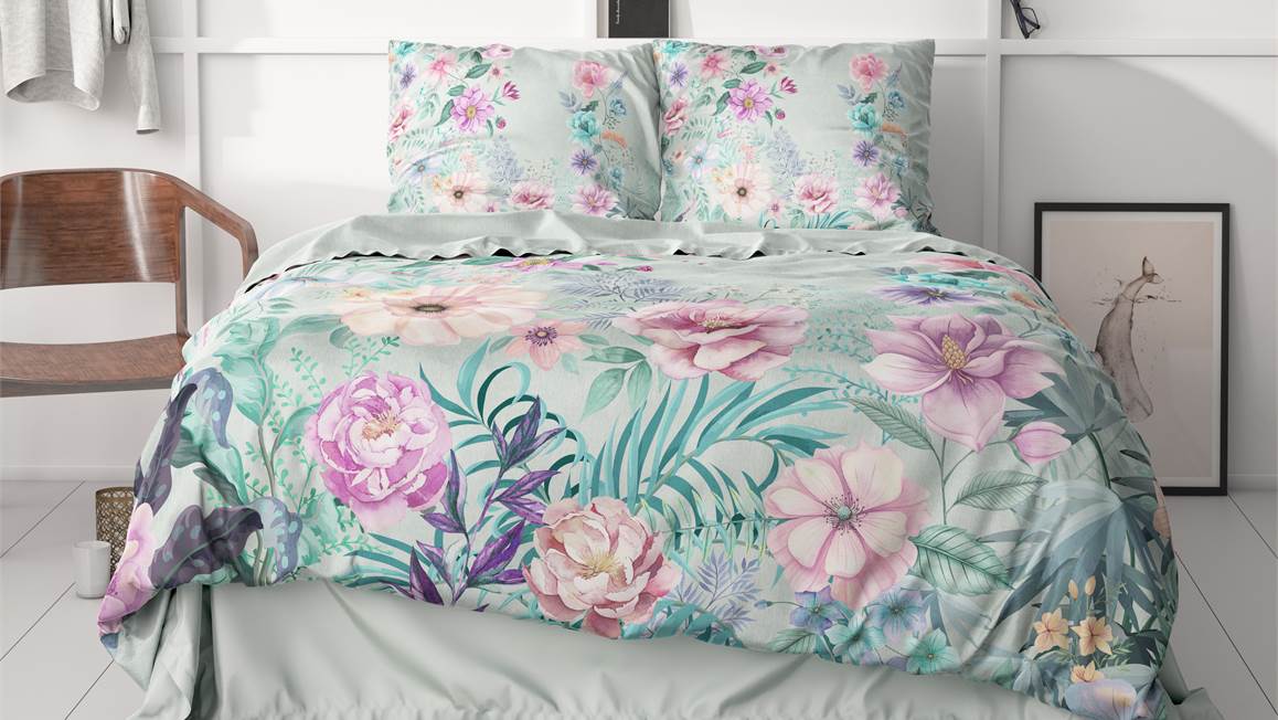Met het vrolijke Flore dekbedovertrek haal je het voorjaar in huis! Op het blauwe dessin springen prachtige bloemen je in het oog. De zachte kleuren brengen je helemaal tot rust. Voor de afwisseling is de achterzijde voorzien van een subtiel printje.