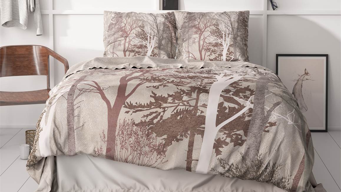 Onder het prachtige Indre dekbedovertrek kom je elke avond weer heerlijk tot rust. Op dit taupekleurig dessin zie je het silhouet van een bos. De verschillende kleurtinten vormen samen een mooie combinatie. Een echte eyecatcher dus!