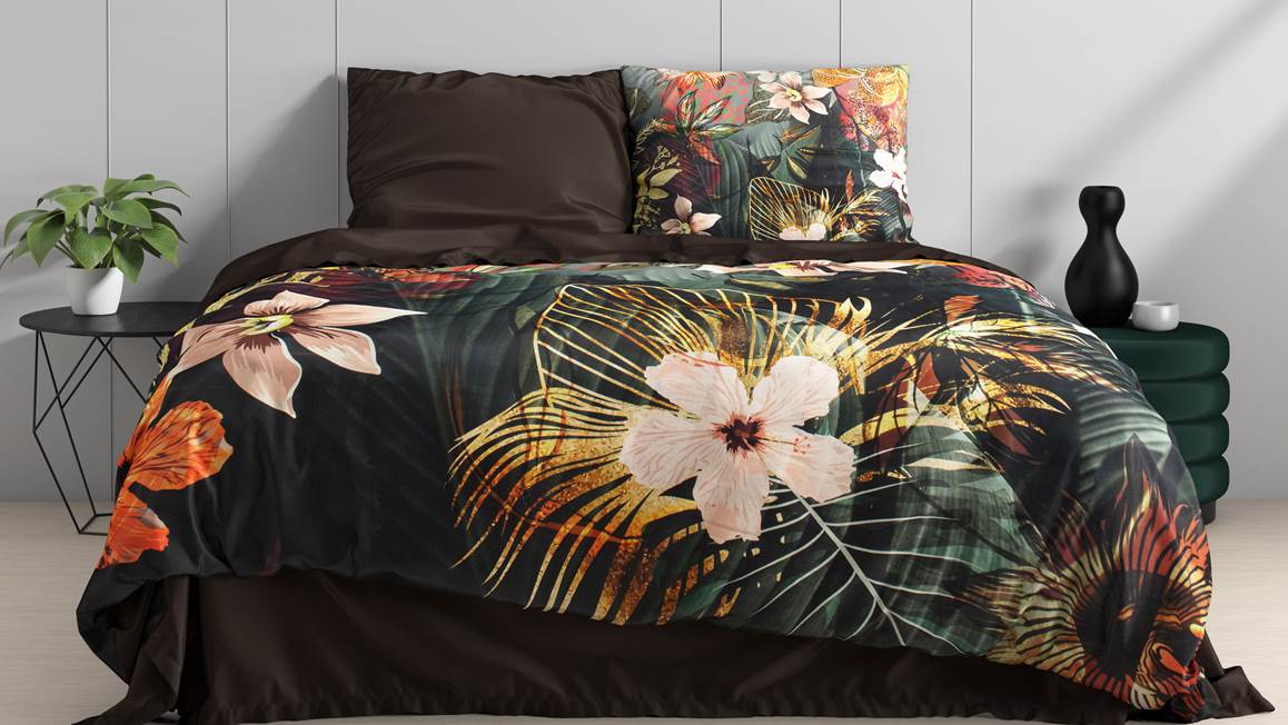 Het Dreamhouse Wild Rose dekbedovertrek bevat een mooie botanische print. Op het overtrek zie verschillende bloemen en bladeren. Het kleurenpallet met onder andere wit, groen en oranje geven het overtrek een warme uitstraling.