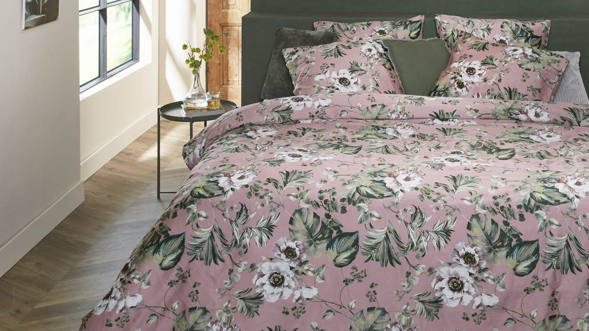 Geef je slaapkamer een stijlvolle look met het Fleur dekbedovertrek. De prachtige bloemenprint komt tot zijn recht op het oud roze dessin. De grote witte bloemen worden omring door groene bladeren en zorgen voor een stoere en rustige touch.
