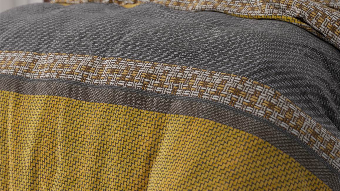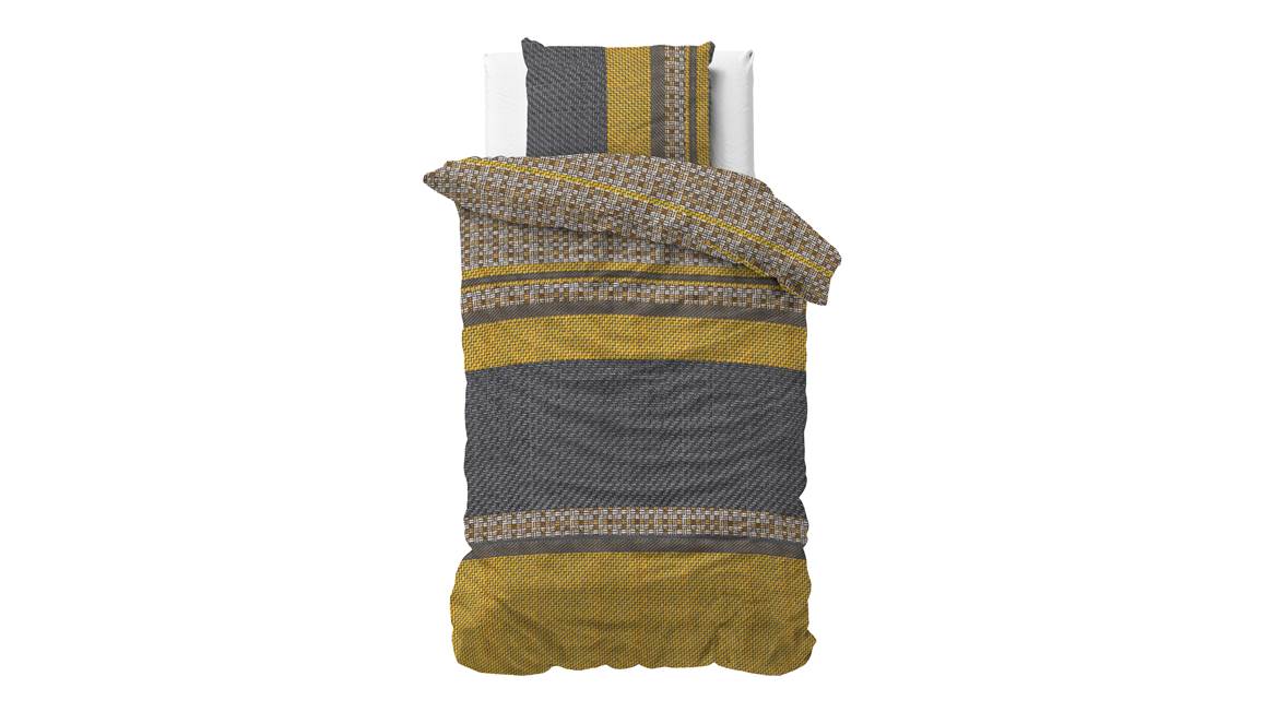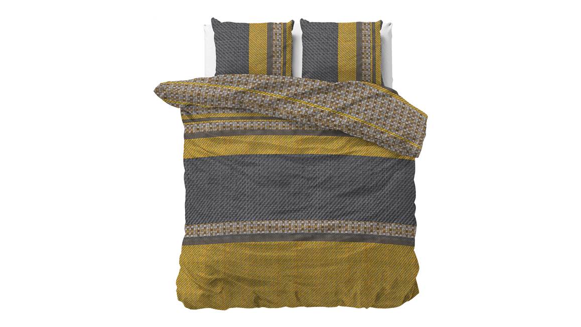 Met zijn krachtige banendessin straalt het Sleeptime Altor dekbedovertrek een stoere elegantie uit. De warme kleuren vormen een prachtig samenhangend geheel. Dit ontwerp is dubbelzijdig verwerkt en komt ook terug in de bijpassende kussenslopen.