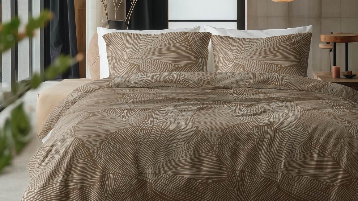 Het Amber dekbedovertrek van het bekende merk Sleeptime brengt net dat beetje extra rust in jouw slaapkamer. De grote bladeren zijn voorzien van een streepmotief die prachtig uitkomt op de bruine ondergrond. De dubbelzijdige print loopt door op de bijbehorende kussenslopen voor een stijlvol geheel.