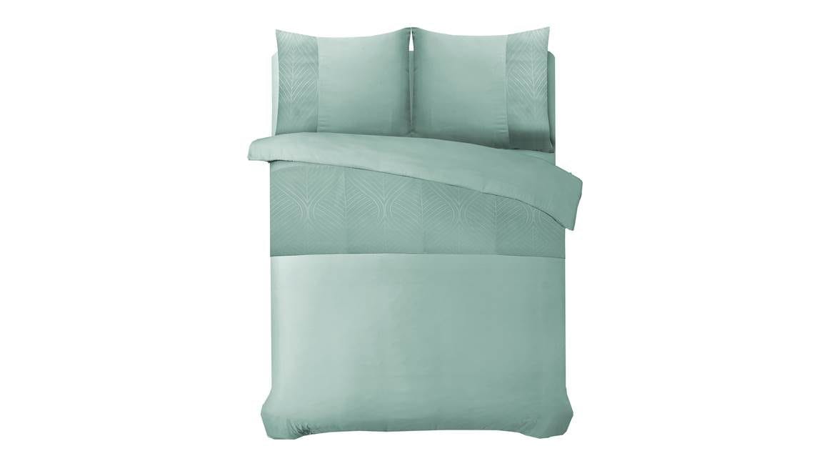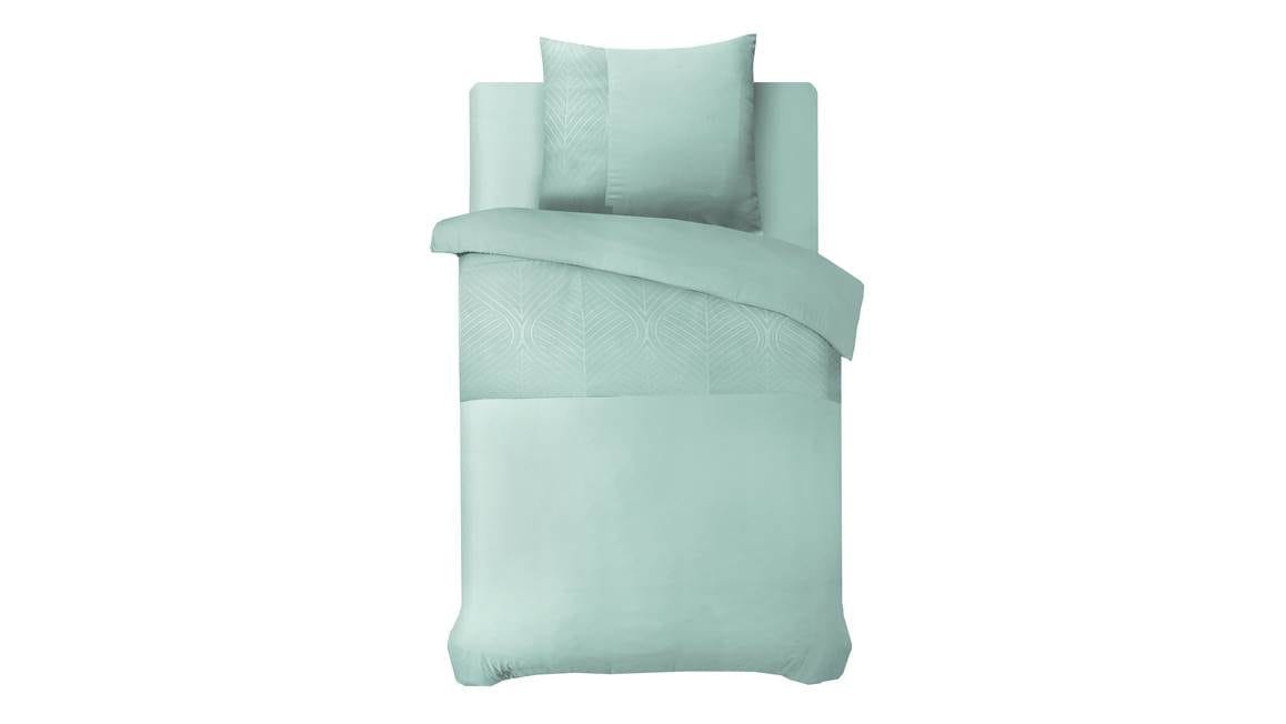 Val iedere avond heerlijk in slaap onder het Sleeptime Berlin dekbedovertrek. Het dessin bevat een fleurige mintgroene kleur die iedere dag een lach op je gezicht tovert. Zowel het overtrek als de bijbehorende kussenslopen zijn voorzien van een baan met grafisch print. Zo oogt het ontwerp net wat speelser en stijlvoller.