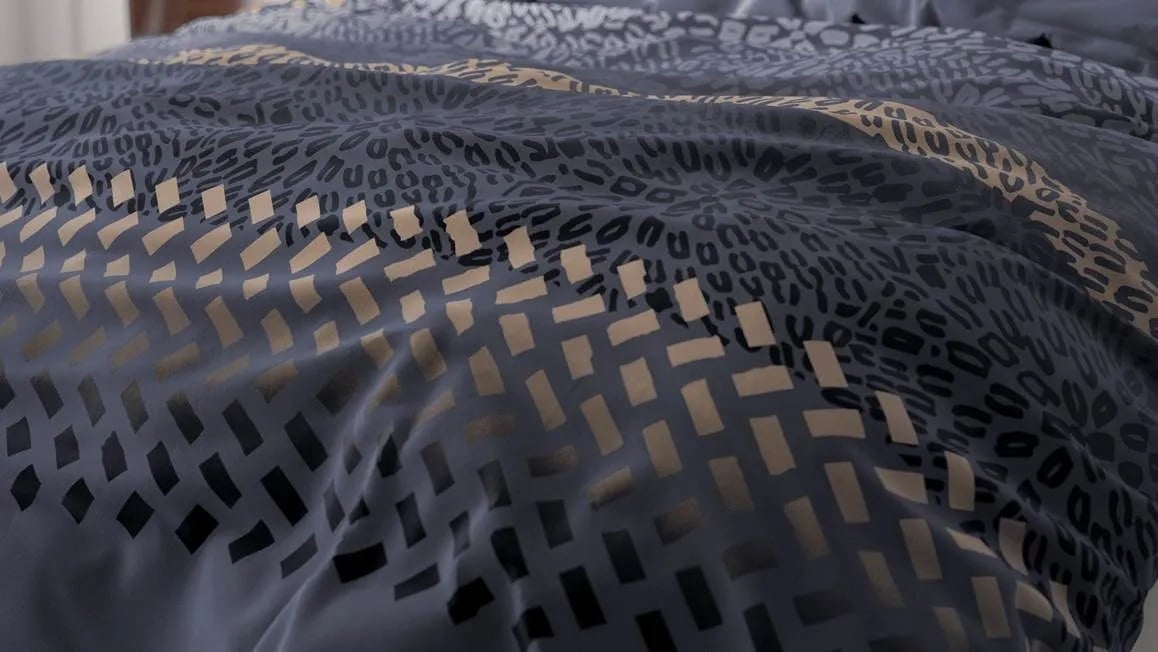 Het Brownie Leopard dekbedovertrek van het merk Sleeptime is een sfeervolle toevoeging aan iedere slaapkamer. Het blauwe overtrek is voorzien van diverse grafische print, ideaal voor als je niet kunt kiezen! De subtiele bruine luipaardprint zorgt voor een speelse toevoeging.