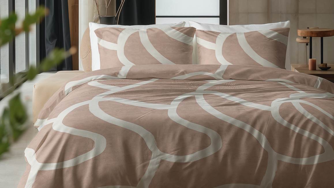 Voor de liefhebber van trendy printjes is het Clay Contours dekbedovertrek van het merk Sleeptime een echte must-have! De witte grafische print komt prachtig uit op de zandkleurige ondergrond. De aardetinten helpen je om iedere avond weer heerlijk ontspannen in slaap te vallen.
