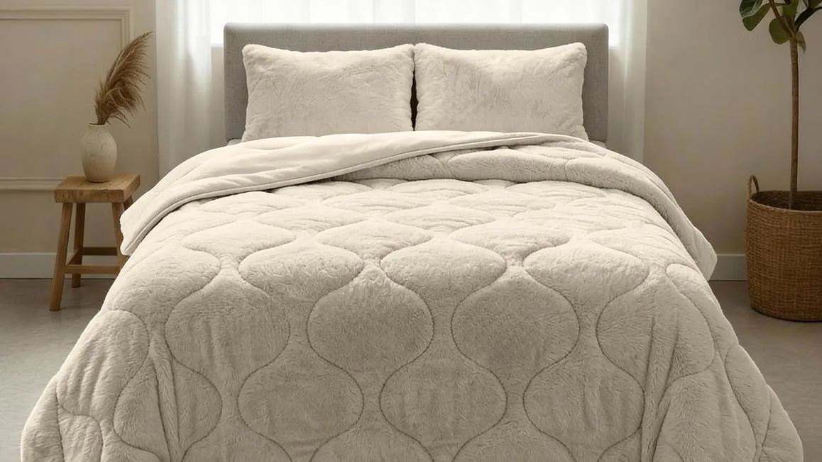| Materiaal tijk | Voorkant: 100% polyester teddy, achterkant: 100% microvezel |