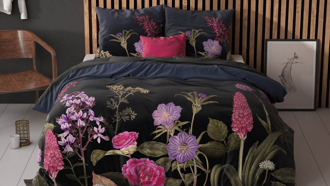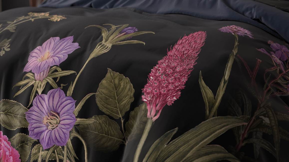 Het Sleeptime Feline dekbedovertrek is een must-have voor de bloemenliefhebber. Op het zwarte overtrek staan verschillende veldbloemen in zachte roze en paarse kleuren. Zo oogt het ontwerp erg sfeervol en val je iedere avond heerlijk in slaap.