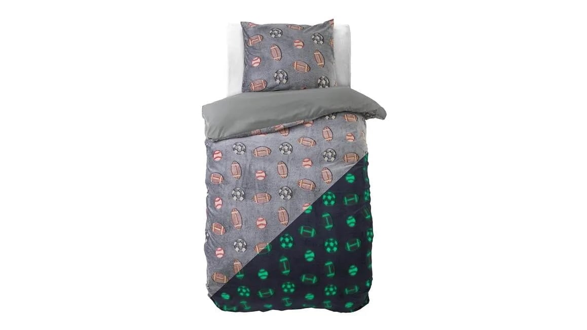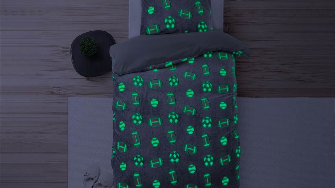 Onder het stoere Glow in the dark Sport dekbedovertrek val je elke avond heerlijk in slaap. Op dit grijze dessin zie je allerlei leuke sportattributen zoals een voetbal, honkbal en rugbybal. Ook lichten ze op zodra het donker wordt!