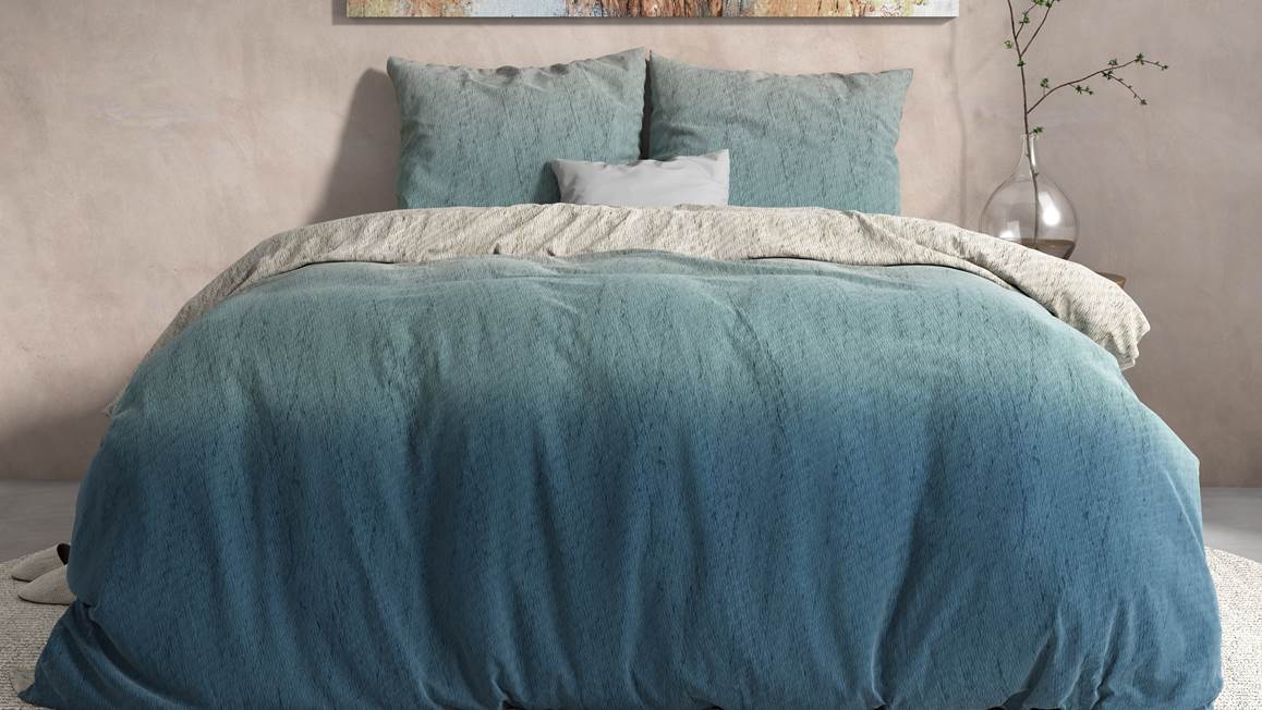 Voeg een vleugje extra kleur toe met het Gradia flanel dekbedovertrek van het merk Sleeptime. Het grafische ontwerp bevat een kleur verloop van blauw naar beige. Het trendy ontwerp laat je heerlijk in slaap vallen en is lekker warm.