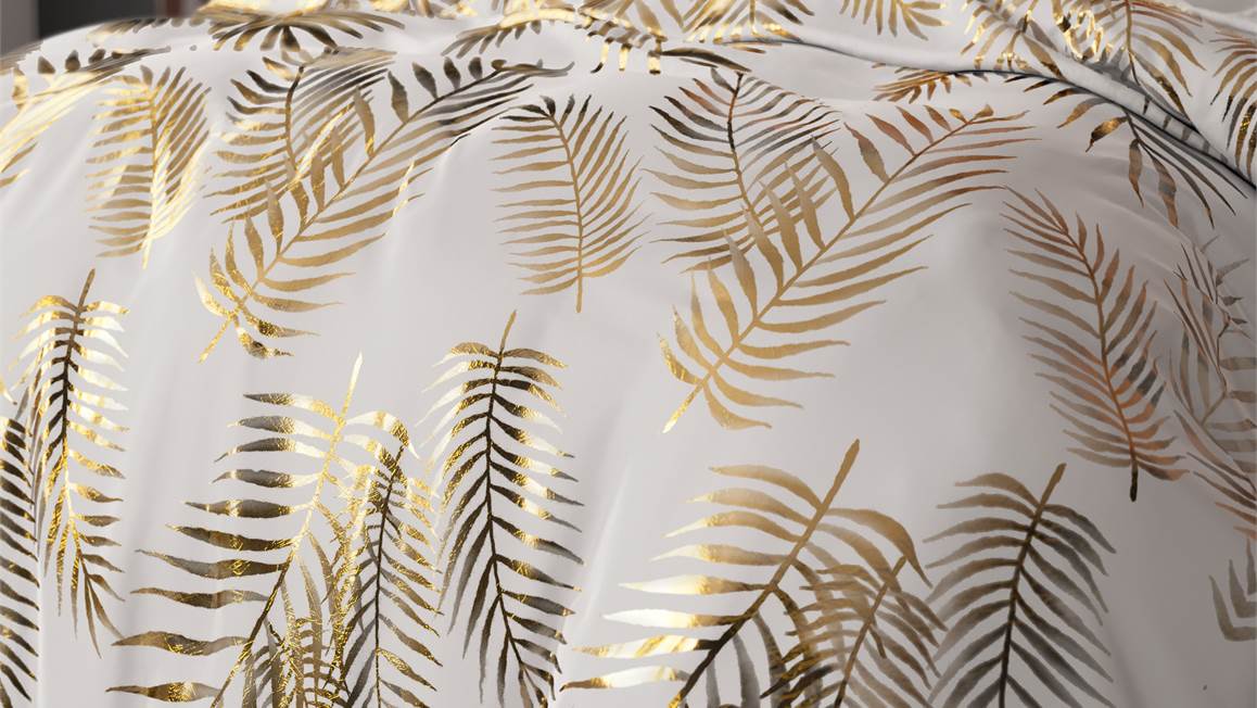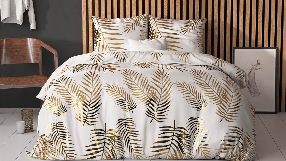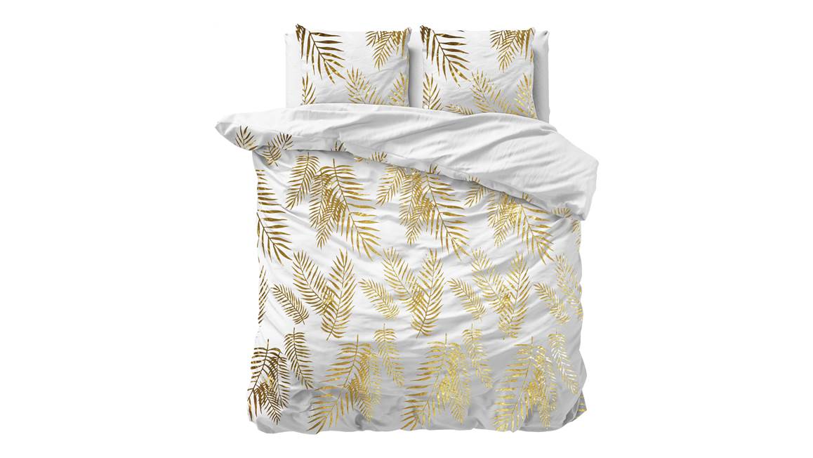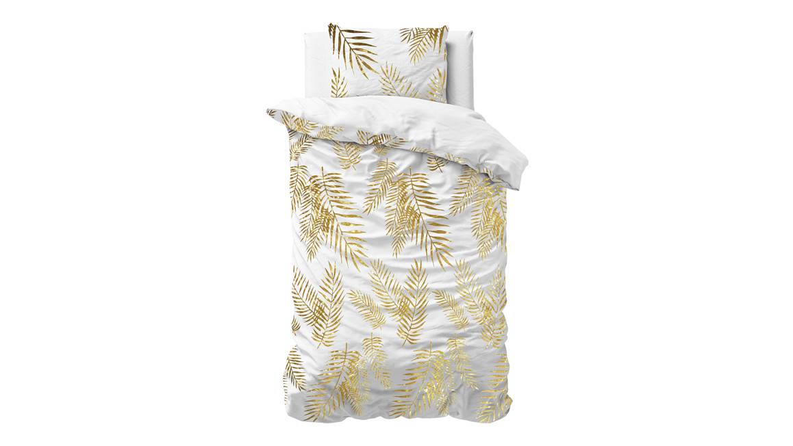 Het Sleeptime Leaves dekbedovertrek is een echte eyecatcher! Dit witte dessin heeft een prachtige print vol met goudkleurige bladeren. Zo ontstaat er een speelse botanische look. Voor de afwisseling is de achterzijde effen wit.