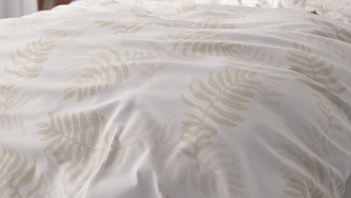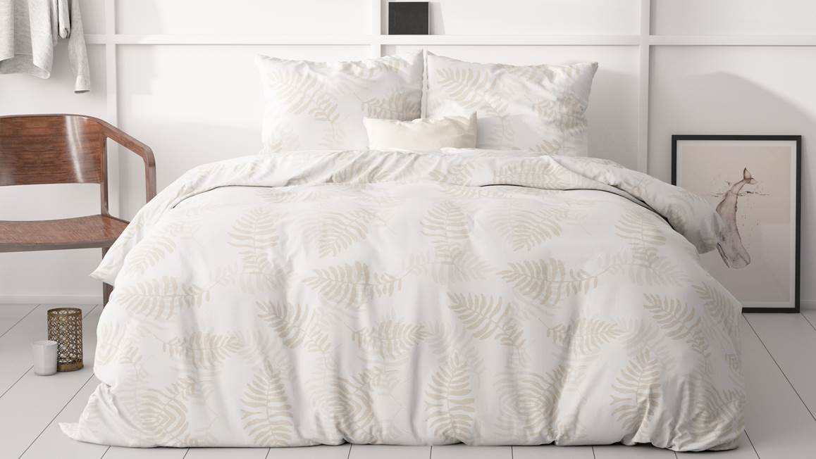 Val iedere avond heerlijk in slaap onder het Sleeptime Leaves Light dekbedovertrek. Het witte dessin is voorzien van een bladerprint in een zacht zandkleur. Het ontwerp oogt hierdoor erg fris en is gemakkelijk te combineren in ieder interieur.