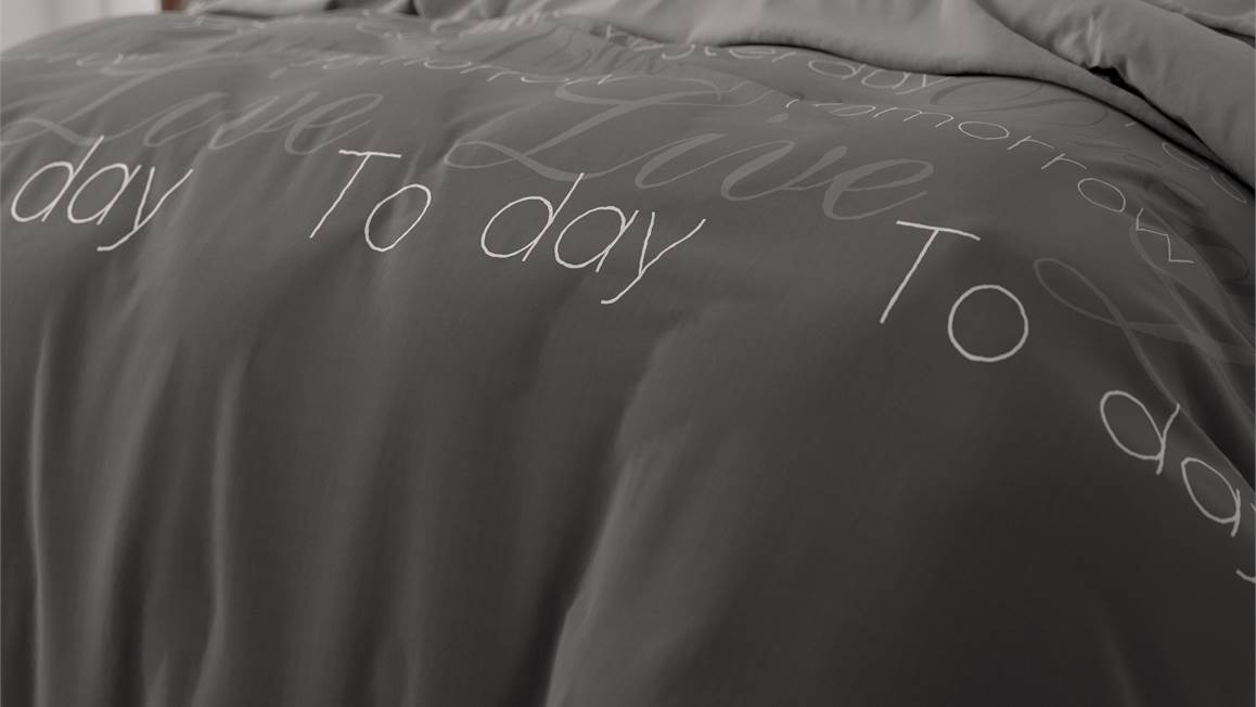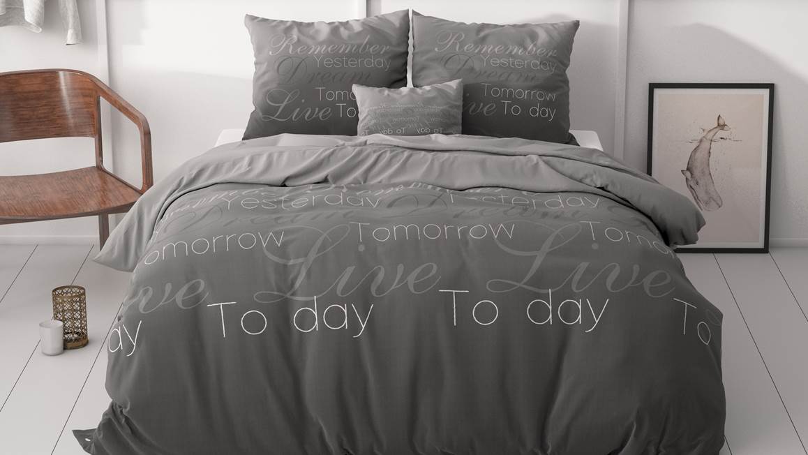 Het Sleeptime Live Today dekbedovertrek is een bron van inspiratie voor een betekenisvol leven. Op het antracietkleurige overtrek staat de wijze tekst: “Remember yesterday. Dream tomorrow. Live today.” Een prachtige reminder om de dag mee te beginnen!