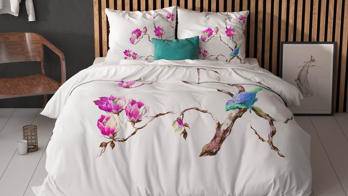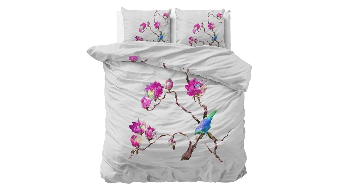 Geef jouw slaapkamer een frisse uitstraling met het Magnolias dekbedovertrek van het merk Sleeptime. Het witte overtrek bevat een print van roze magnolias met een lief klein vogeltje op de tak. Haal eenvoudig het voorjaar in huis.