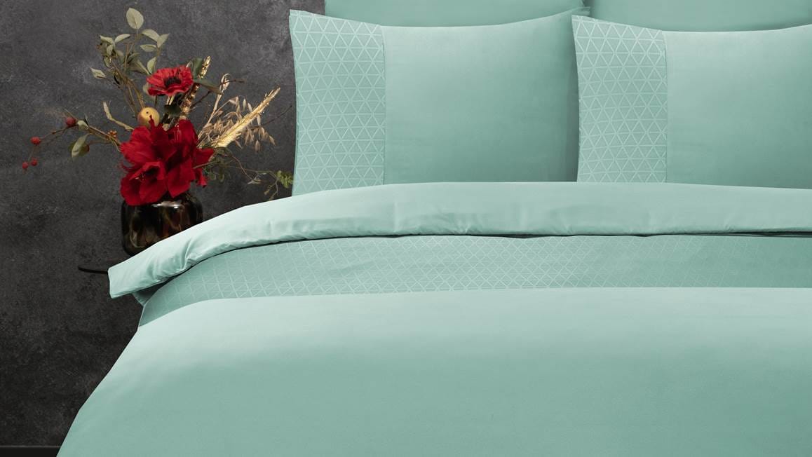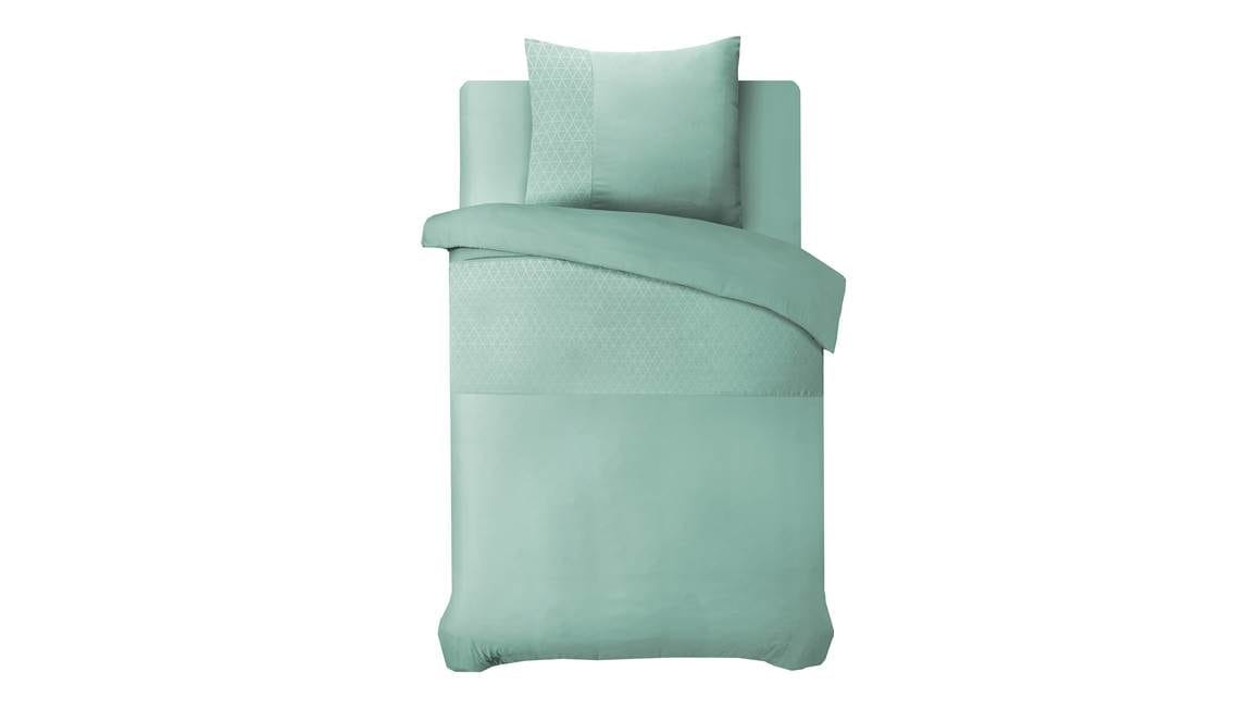 Voeg een vleugje extra kleur toe aan jouw interieur met het Monte Negro dekbedovertrek van het merk Sleeptime. De mintgroene tint oogt erg vrolijk en haalt eenvoudig de lente in huis. Zowel de kussenslopen en het overtrek zijn voorzien van een geometrische band.