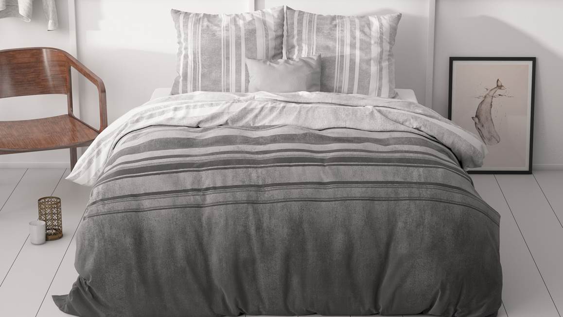 Ontdek het subtiele dessin van het Sleeptime Moon Lights dekbedovertrek. Dit grijze overtrek verrast met een elegante twist: een prachtige overloop van kleuren en contrasterende strepen voor een uniek en dynamisch design.