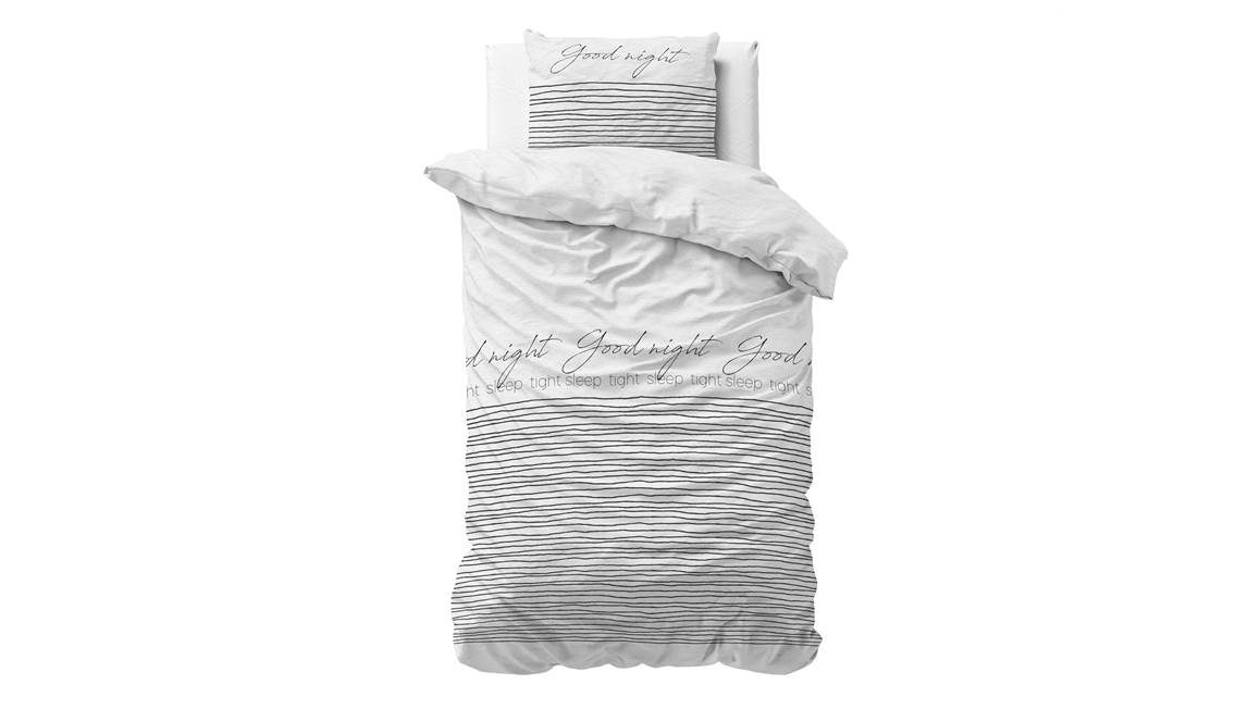 Onder het Sleeptime Sleeptight 2 dekbedovertrek is een heerlijk nachtrust gegarandeerd. De speelse zwarte lijnen worden ondersteund met de tekst “Goodnight” en “Sleep tight”. Door alleen te kiezen voor zwart en wit is het geheel erg rustgevend en droom je zo weg.