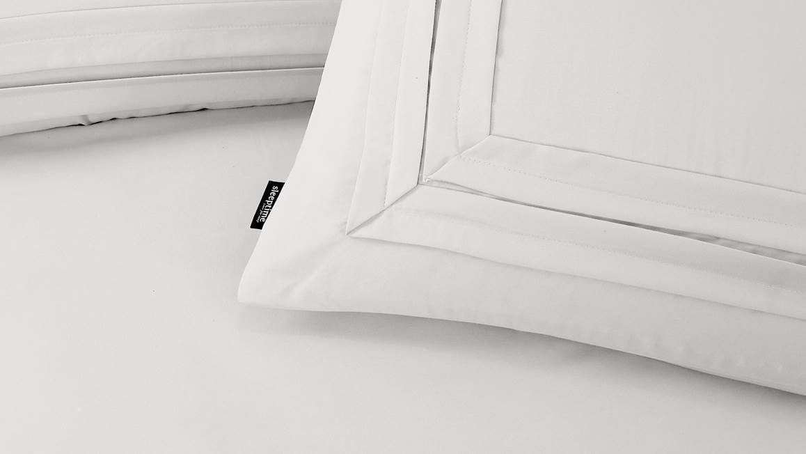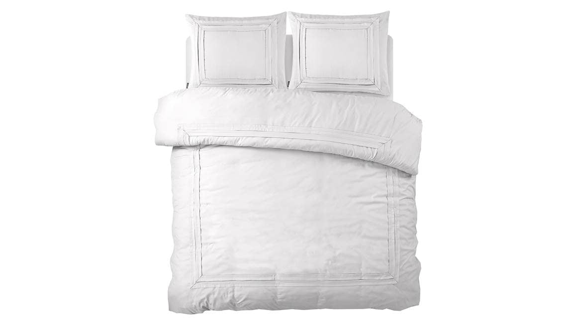 Het Slaaptime Tailord dekbedovertrek geeft jouw slaapkamer een strakke uitstraling. Het witte dessin een subtiele omlijning van witte opgestikte stof. De achterzijde is effen, zodat jij heerlijk in slaap kunt vallen.