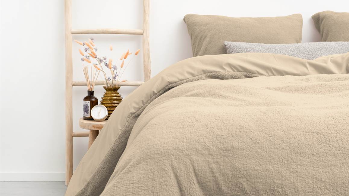 Ben jij ook helemaal weg van zachte teddy stof? Laat jezelf elke avond omarmen door dit knuffelachtige materiaal! Teddy voelt heerlijk comfortabel aan op je huid en is helemaal van nu. Het geeft je slaapkamer een gezellige look.