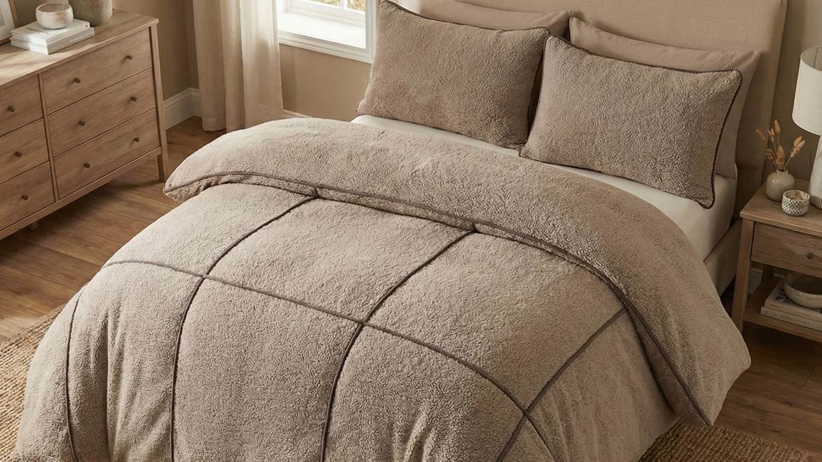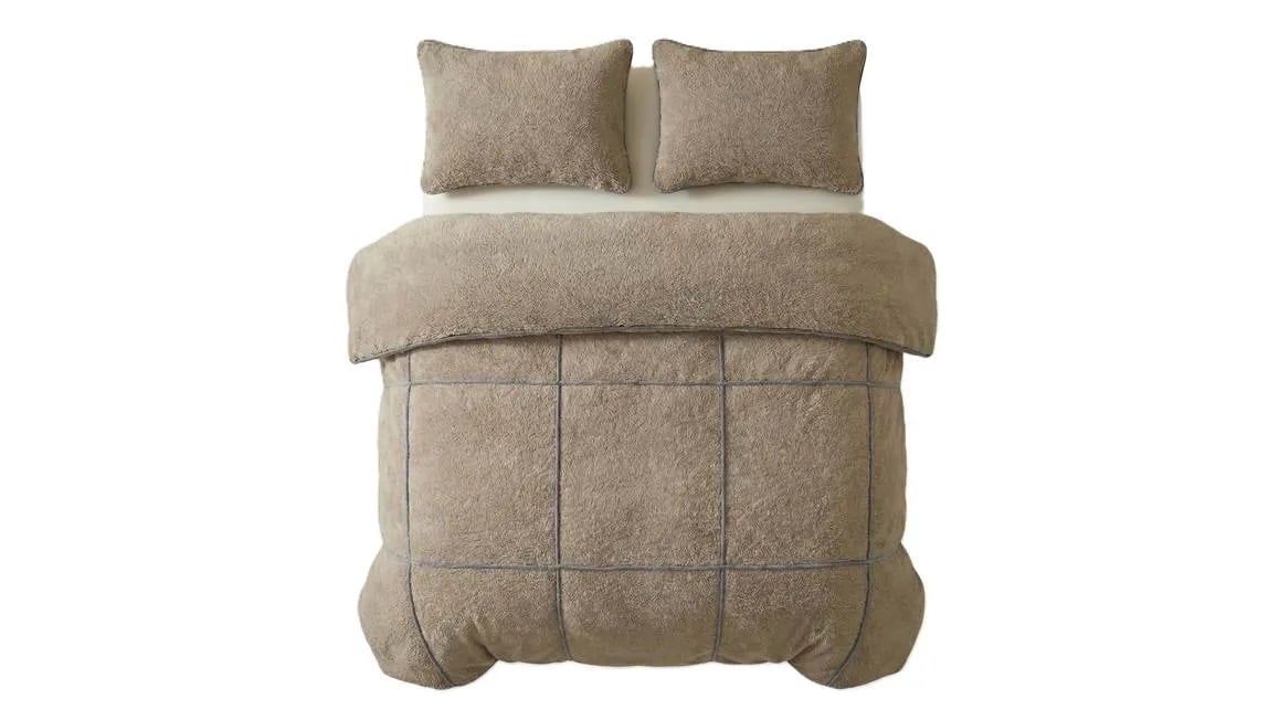 Maak van jouw slaapkamer een sfeervol geheel met het Sleeptime Teddy Trim dekbedovertrek. Het taupekleurige dessin is voorzien van een ruitenpatroon die door middel van een bies geweven is. De teddy stof voelt ook nog eens zo ontzettend zacht aan dat je hele dagen in bed wilt blijven liggen!
