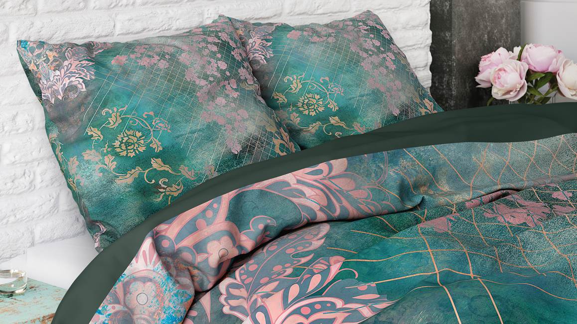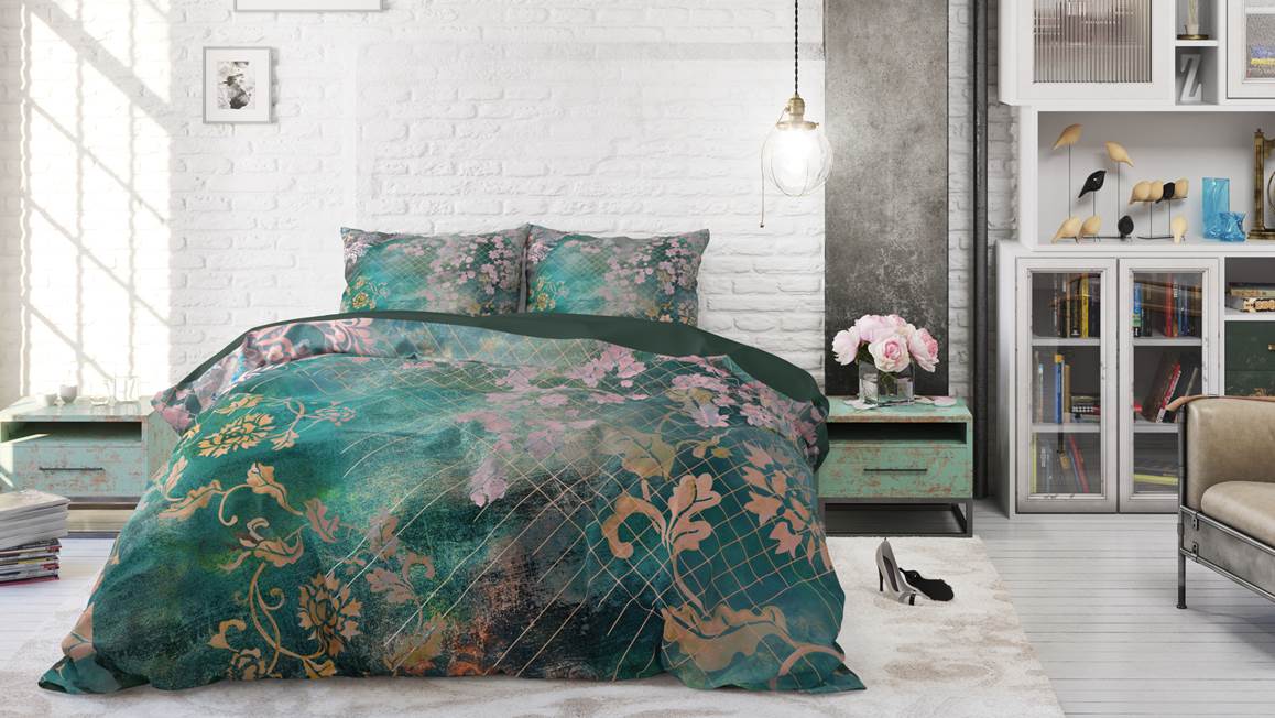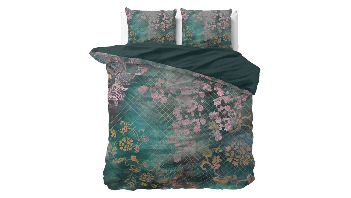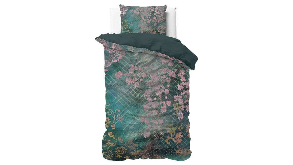 Het Sleeptime Tiran Flower is een kleurrijk geheeld. De roze en gele bloemen en bladeren komen prachtig uit op de blauwe ondergrond. Daarnaast is het dessin voorzien van een geruite print voor een speels effect. De achterzijde is effen van kleur.