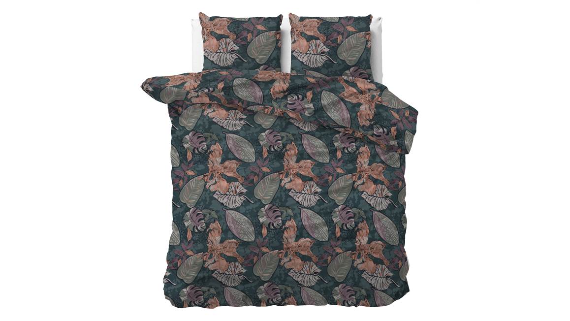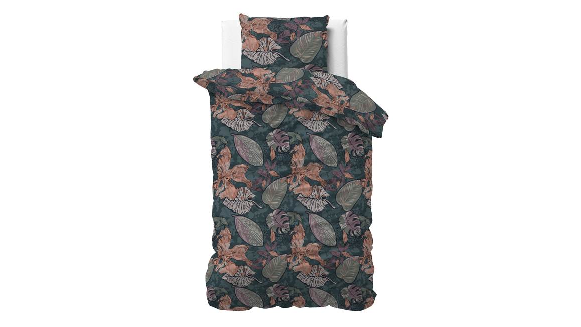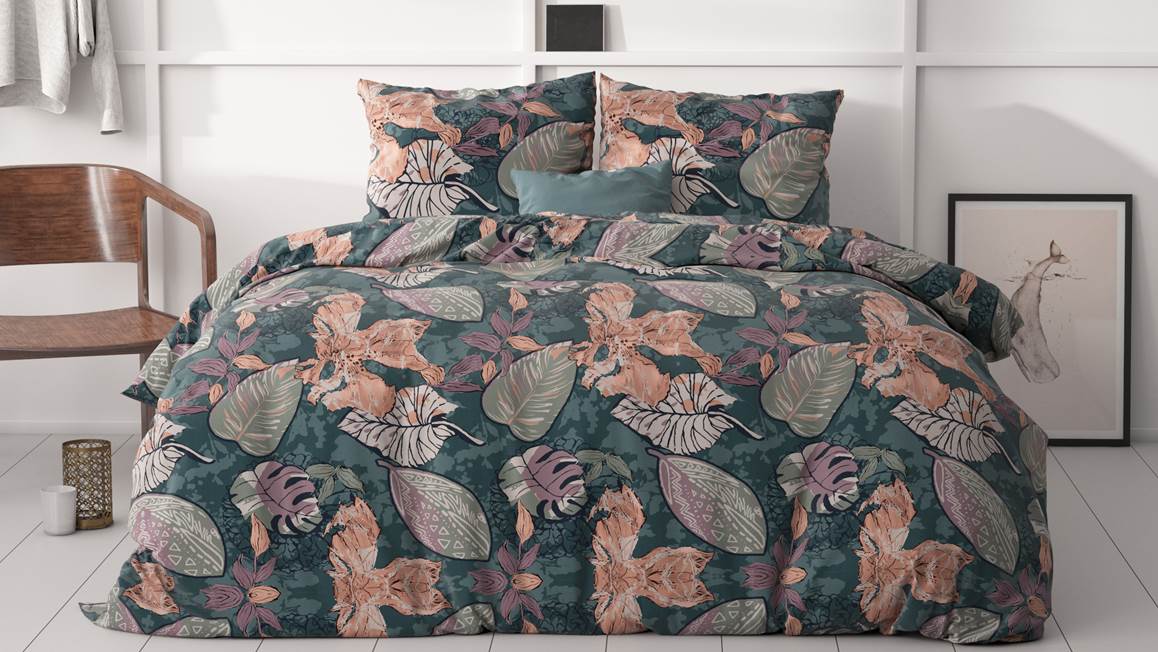 Creëer een echte herfstlook in de slaapkamer met het Sleeptime Tushy dekbedovertrek. Verschillende grote bladeren in echte najaarskleuren verrijken het groene dessin. De dubbelzijdige print loopt door op de bijbehorende kussenslopen voor een prachtig geheel.